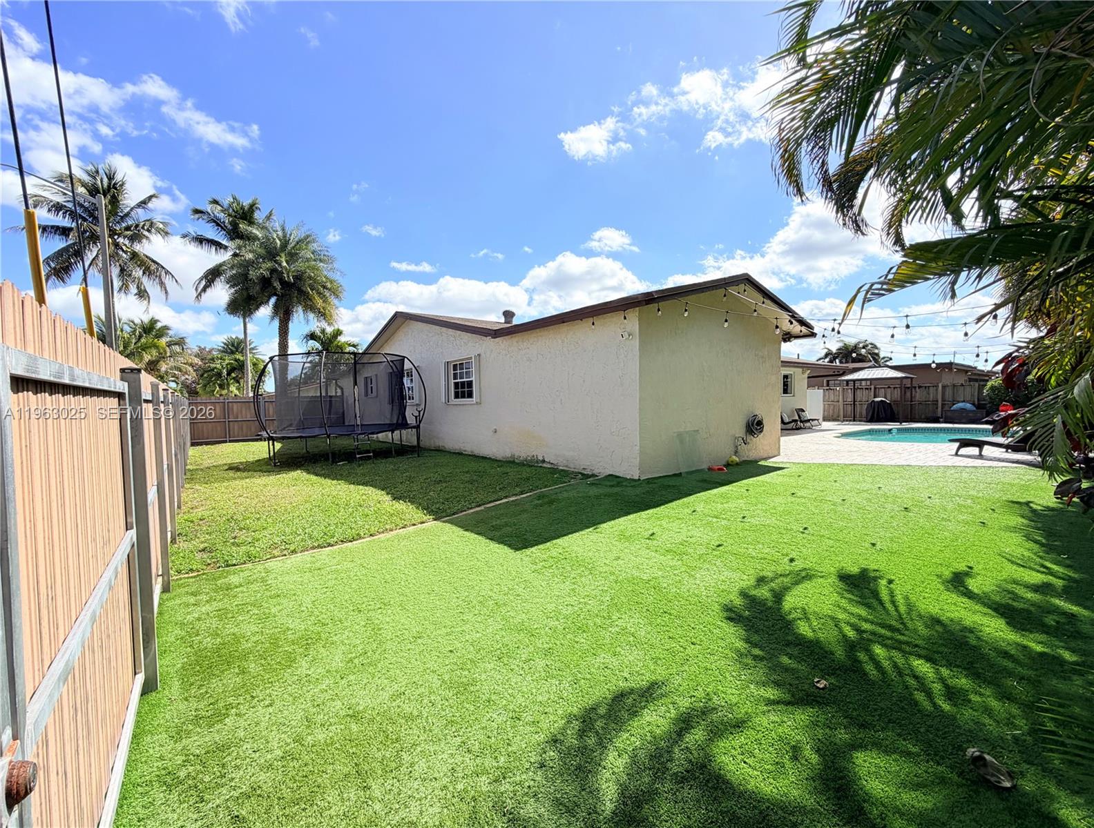 Well-maintained Pembroke Pines home located on the largest corner lot on the block and close to local schools. The home features a spacious paved driveway and a two-car garage with a hurricane-impact garage door and professionally finished epoxy floors, offering a clean, polished look that is ideal for organization, storage, and easy maintenance. Inside, the home has a bright and open layout with ceramic tile flooring throughout the main living areas. The kitchen offers granite countertops, a center island, and breakfast bar seating, making it great for daily living and gatherings. The backyard offers a private tropical setting with mature palm trees for privacy, a large pool with an electric pool heater, and a pre-wired outdoor sound system. The exterior also includes two large side yards with enough space suitable for an extra vehicle, small boat or RV. Pool and sprinkler equipment are neatly hidden within a fenced area, helping maintain a clean and organized outdoor space. This home offers comfortable and functional South Florida living. Owner/Seller/Listing Agent is a licensed Florida real estate broker.
