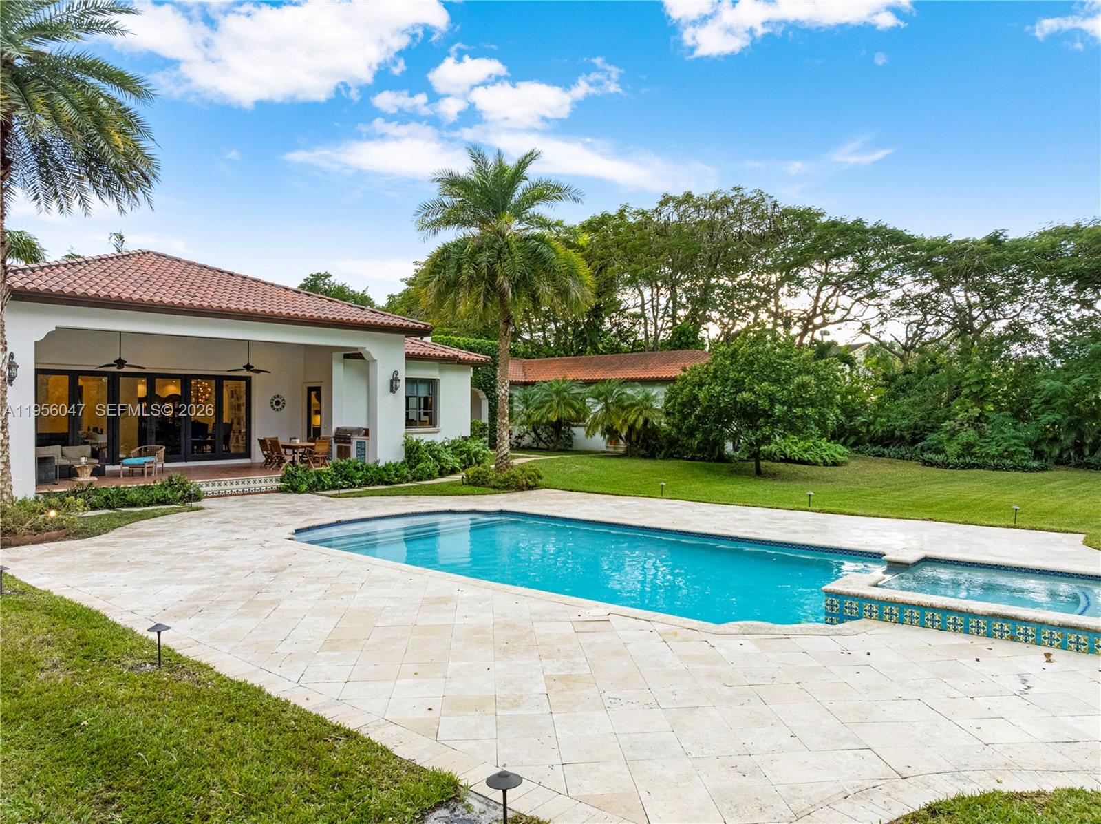 Welcome to Casa Azul! This timeless Santa Barbara–inspired Mediterranean retreat in North Palmetto Bay was custom-built in 2016 by its current owners and sits on a privately gated 54,000+SF estate east of Old Cutler Rd. Designed for modern living with exquisite details, the home features soaring 13–16' ceilings, expansive great room, oversized chef’s kitchen, wood and stone floors, quartzite counters, and custom chandeliers. Through a charming breezeway is a 3-car garage and GUEST HOUSE with private entrance, a living room, kitchenette, and bedroom/bath ideal for in-laws, teens, or home office. Outside, enjoy a resort-style pool, gazebo with bath, lush landscaping, and room for a tennis court. Steps from top schools, trails, and the bay. Luxury, design, and location in perfect harmony.