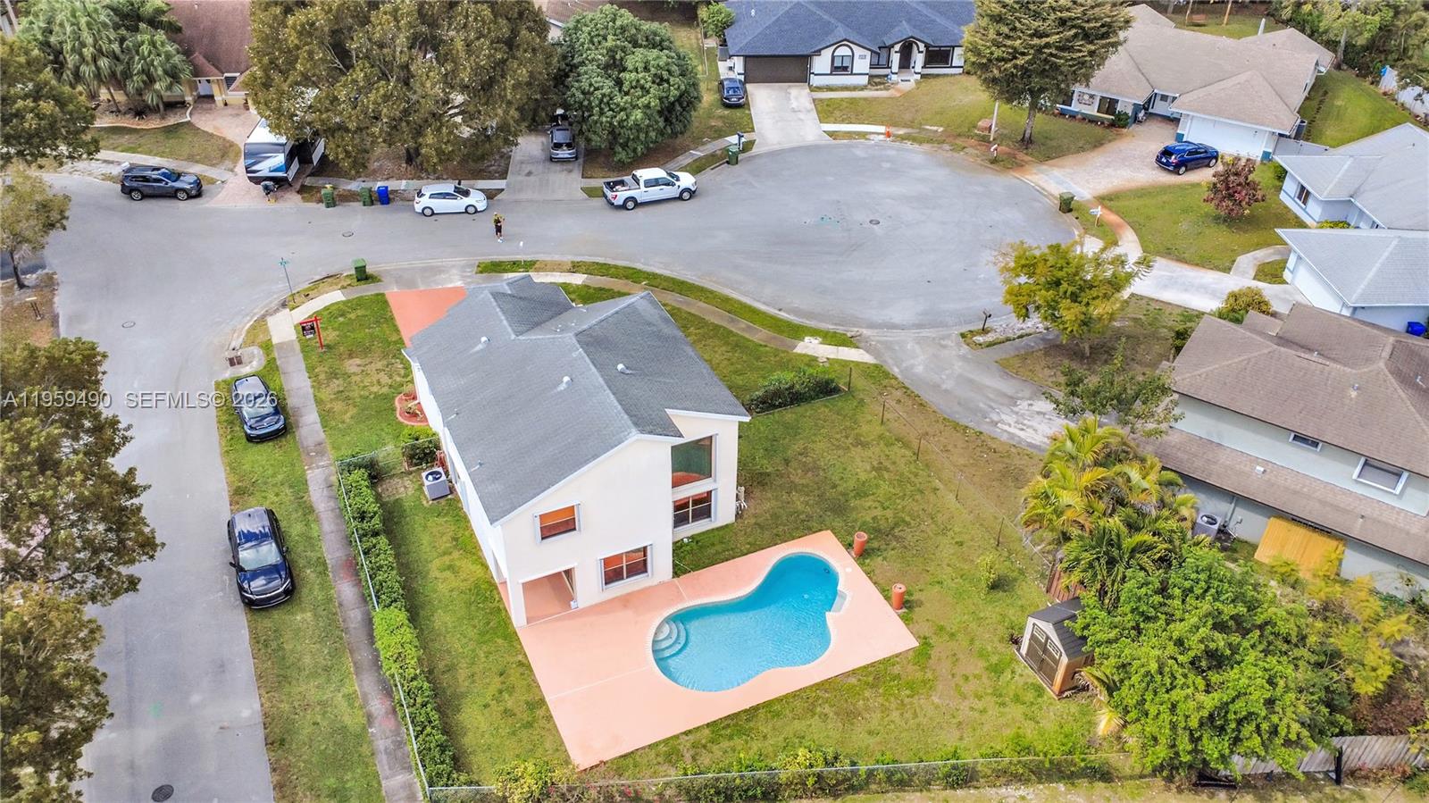 Beautiful two-story custom pool home located in desirable Pembroke Lakes. This bright and airy property features large windows that fill the home with natural light and offer serene pool views from the main living areas and the primary bedroom. Situated on a quiet cul-de-sac, the home sits on a spacious, fully fenced lot—perfect for privacy and outdoor enjoyment. The interior offers neutral tile flooring downstairs and wood laminate flooring upstairs. An additional air-conditioned space with a closet provides flexible space for a home office, guest room, or playroom. Enjoy peace of mind with an approximately 8-year-old roof, hurricane shutters, and a new air-conditioning system. Excellent location close to A-rated schools, Memorial Hospital, shopping, and C.B. Smith Park.