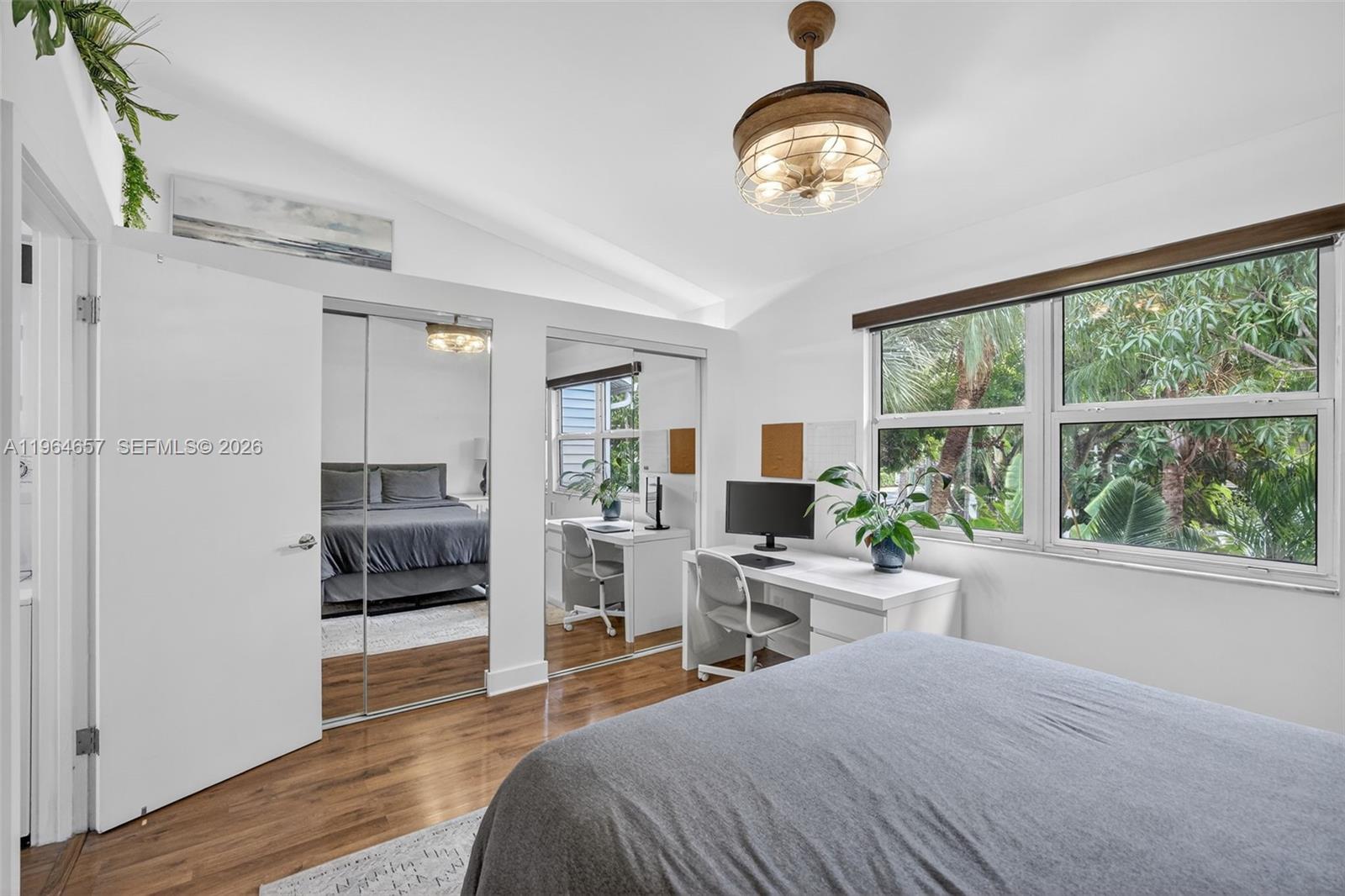 Beautifully updated 2-bedroom residence nestled along the Middle River in a prime central Fort Lauderdale location. Lush tropical foliage, privacy walls, and a private patio with hot tub create a serene, resort-style setting with exceptional privacy. Vaulted ceilings and porcelain flooring enhance the bright, open living space, while impact windows and doors offer peace of mind and energy efficiency. The home features a spacious primary bedroom with a true master bathroom suite and walk-in shower, ample storage throughout, and a well-appointed kitchen with stainless Whirlpool appliances. Enjoy access to a community pool within a fenced-in complex with security cameras and low HOA. Ideally located just 10 minutes to the beach and downtown Fort Lauderdale, walkable to the nearby entertainment district, and minutes from Colohatchee Park and a local boat ramp. A rare opportunity to own in a private, river-adjacent setting with unbeatable convenience.