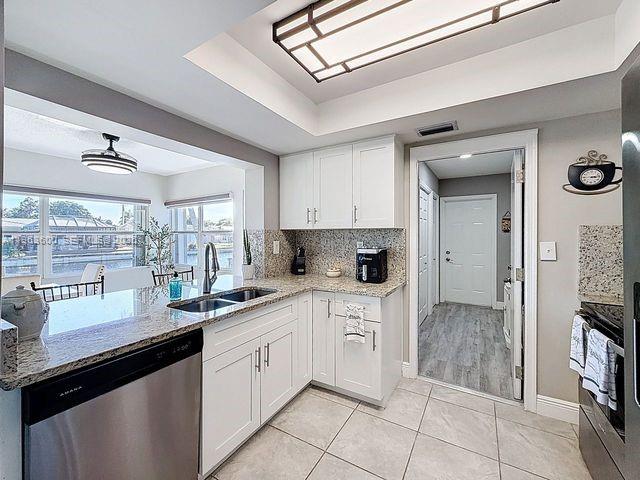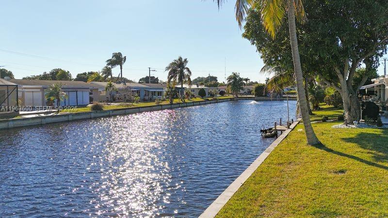 True Waterfront living, enjoy peaceful open canal views right from your kitchen and the additional Enclosed Florida room.7-year roof and A/C plus new water heater and dishwasher offer peace of mind. Top of the line kitchen with granite countertops, white cabinetry, and stainless-steel appliances leading to a Dedicated Laundry Room & pantry for added storage and everyday convenience. Updated bathroom. Tile flooring throughout with wood-look floors in the bedrooms and modern recessed ceiling lighting throughout. Extended driveway and back patio, a unique find plus hurricane-rated screen door. Walking distance to community pools and close to the Mainland's Park with Scenic walking trails and outdoor exercise area. Maintenance includes lawn care, sprinkler system, common areas, and heated pools.