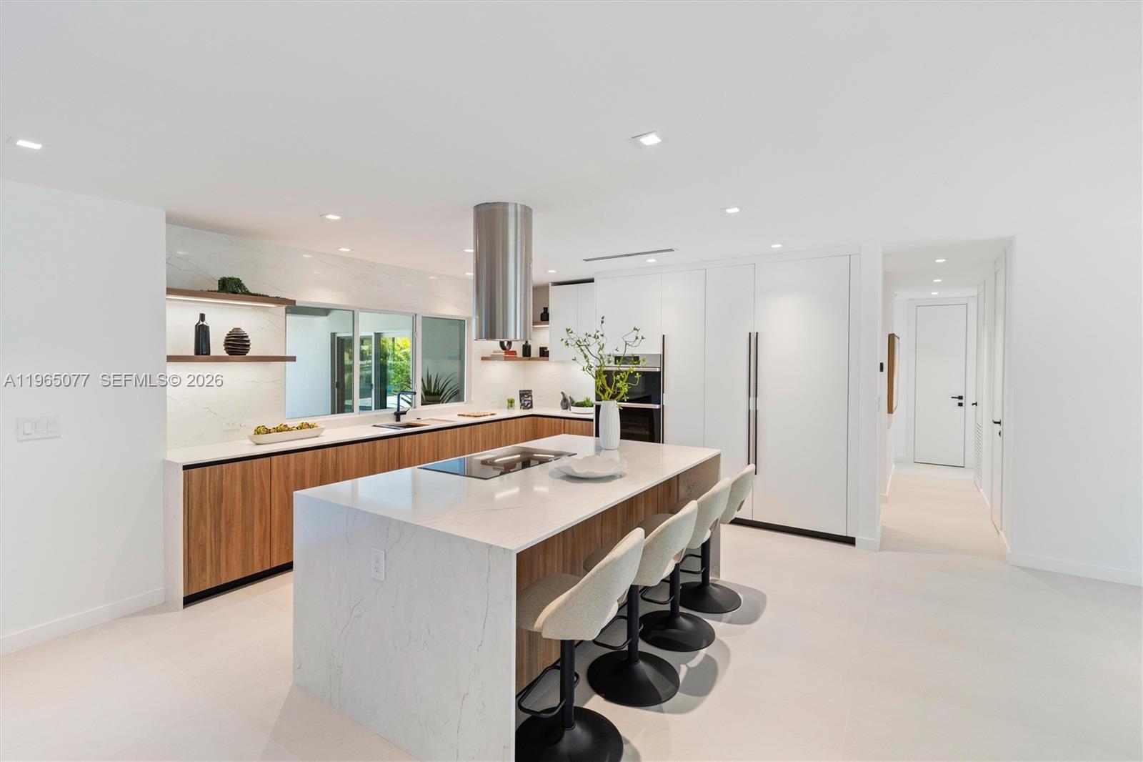 Prime lakefront home in prestigious Enchanted Lakes, fully renovated down to the studs with a new 2025 roof, all-new electrical and plumbing, new insulation, drywall, ductwork, and two high-efficiency A/C systems. Features include brand-new impact windows and doors, floor-to-ceiling Italian doors, an open-concept layout with high ceilings, MiaCucina Italian kitchen with brand-new Dacor luxury appliances, spa-style baths, wide-plank flooring, and LED lighting throughout. Actual area 3,104 square feet reflected in tax records; buyer to verify all measurements. Exterior upgrades include a brand-new driveway, professional landscaping, a brand-new pool, and a completely new seawall and deck spanning the entire backyard—all just minutes from Aventura, beaches, major highways, and top schools.