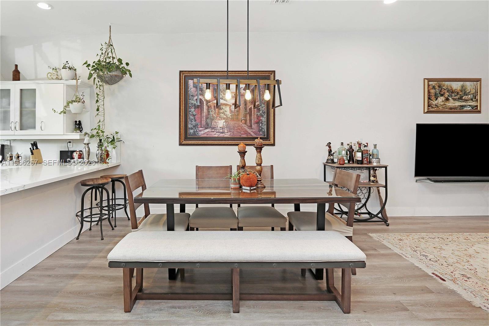 Rare opportunity in the heart of East Hollywood! This inviting 3 bedroom, 2.5 bath townhome offers the perfect blend of space and comfort, complete with a 2 car garage and a private rooftop terrace where you can unwind and take in the city views. The open living area features volume ceilings, crown molding, and warm wood flooring that flows throughout, creating a welcoming atmosphere from the moment you walk in. Enjoy a formal dining space for gatherings and a bright kitchen with stainless steel appliances, granite countertops, white cabinetry, pantry storage, and a convenient sit-down bar for casual meals. All bedrooms are tucked away upstairs for added privacy, including a spacious primary suite with its own balcony and a relaxing bath with separate shower and jacuzzi tub. A cozy sitting area at the top of the staircase and additional storage under the stairs add to the thoughtful layout. With a fenced front yard, a private rear courtyard, and only six townhomes in the community, this home offers both charm and privacy. Ideally located just minutes from the famous Hollywood Broadwalk, beautiful beaches, Downtown Hollywood, shopping, and dining — this is South Florida living at its best.