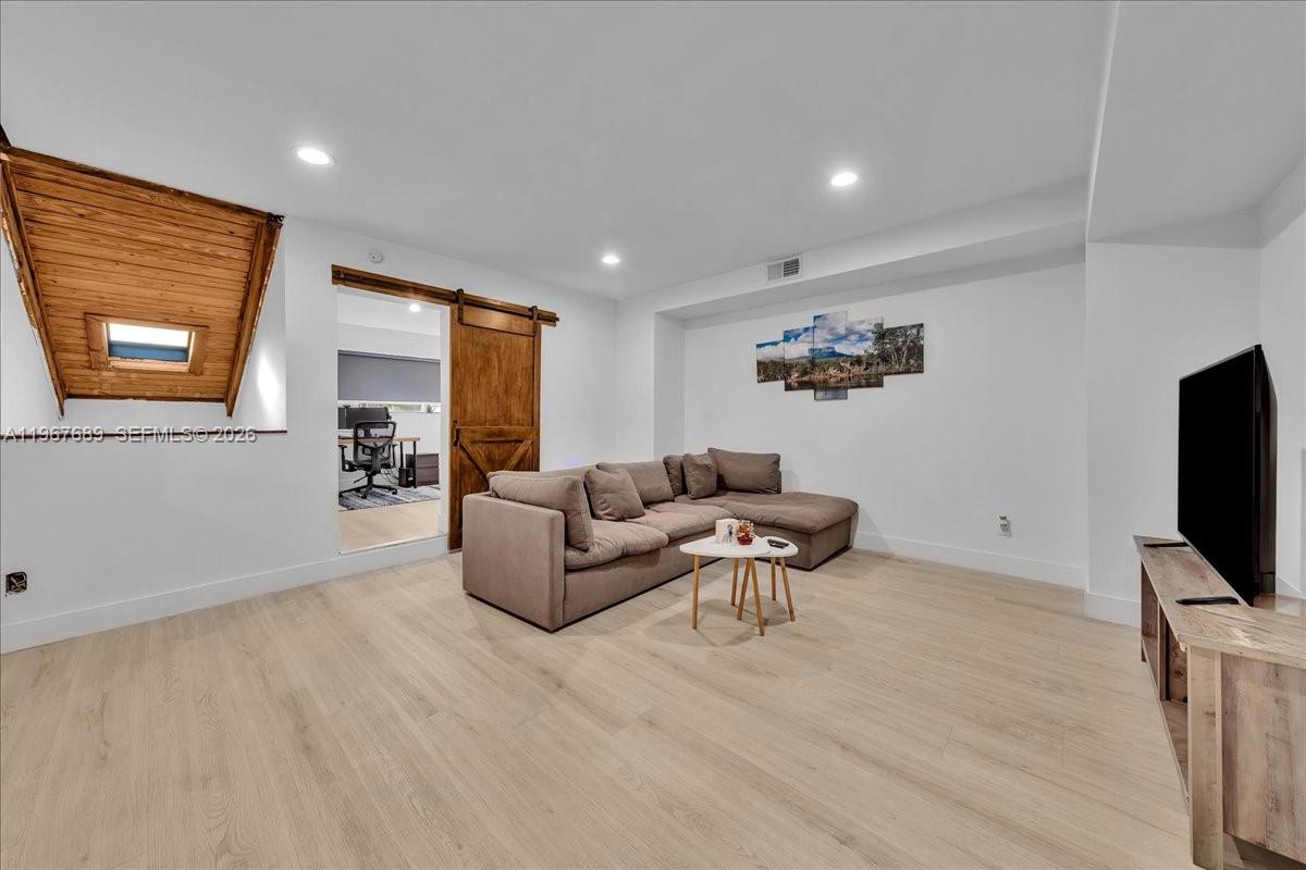 This stunning 3-bedroom, 2-bath home features a spacious open floor plan with neutral-colored walls and beautiful vaulted ceilings that create a bright and inviting atmosphere, all set in a nice and safe neighborhood. Two bedrooms are conveniently located on the main floor, while a versatile loft overlooks the living area below, and an additional upstairs room offers the perfect home office or second workspace for remote professionals. The master suite includes a walk-in closet and private bath. Large dining room windows overlook the backyard, filling the space with natural light, while skylights enhance the airy feel throughout the main living areas. Sliding glass doors provide direct access to the backyard, ideal for entertaining or relaxing in privacy. The home has been thoughtfully remodeled with an updated kitchen, new floors, and a renovated patio, adding modern style and comfort. Residents enjoy community amenities including a pool, tennis and basketball courts. Ideally located near I-95 and the Florida Turnpike, with easy access to Downtown Hollywood, Aventura Mall, and the vibrant Young Circle Arts District, plus close to Hollywood Beach Broadwalk and West Lake Park for outdoor recreation, this home blends modern upgrades with an unbeatable South Florida location.