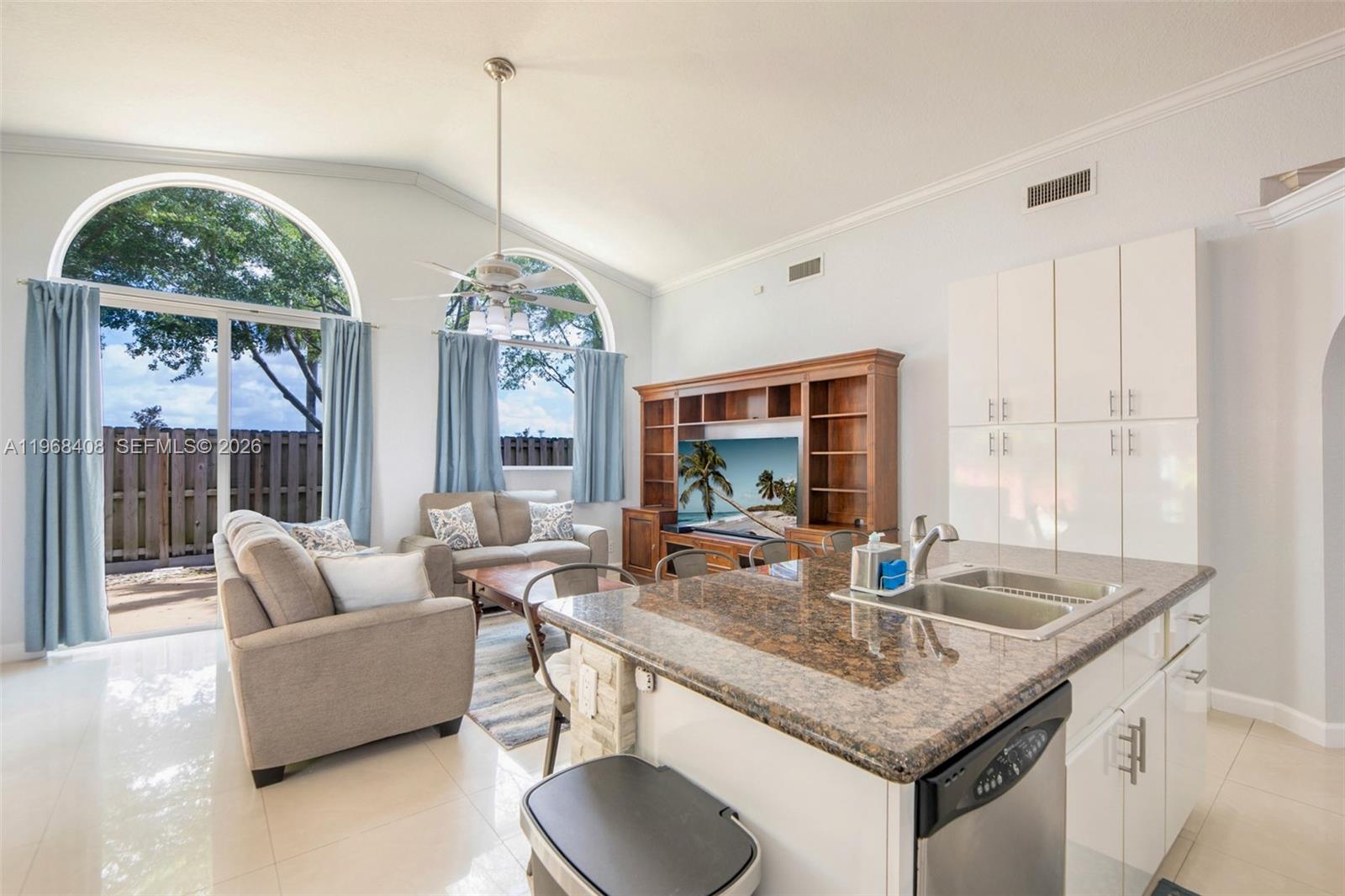 Highly sought after one story 3 beds and 2 baths floor plan in Doral. Great value on a home that has a NEW ROOF installed in June 2020 and NEW HURRICANE IMPACT WINDOWS AND DOORS in 2025. Spacious modern and open floor plan home with vaulted ceilings and lots of natural light. Enter into the home's formal foyer that leads to the formal living room and formal dining room. Bright open kitchen with ample counter space and lots of cabinets together with a breakfast area and family room that overlooks the covered patio and backyard. Main bedroom with double door entry, tray ceilings and double walk-in closets. Main bathroom has dual vanities, separate shower, roman tub and enclosed toilet and bidet room. Separate laundry room features cabinets for storage and a utility sink for convenience. Two car garage with double doors and plenty of storage space. Automatic garage door openers for both doors. Double extended driveway is spacious. Partially covered back patio and plenty of trees and fence in the back for privacy. Backup generator installed in the home and recently serviced. Costa Verde is centrally located near major highways, shopping and dining. Community features a 24 hour security gate, community pool and resort style area and playground. Low association fee which includes cable and front lawn maintenance.