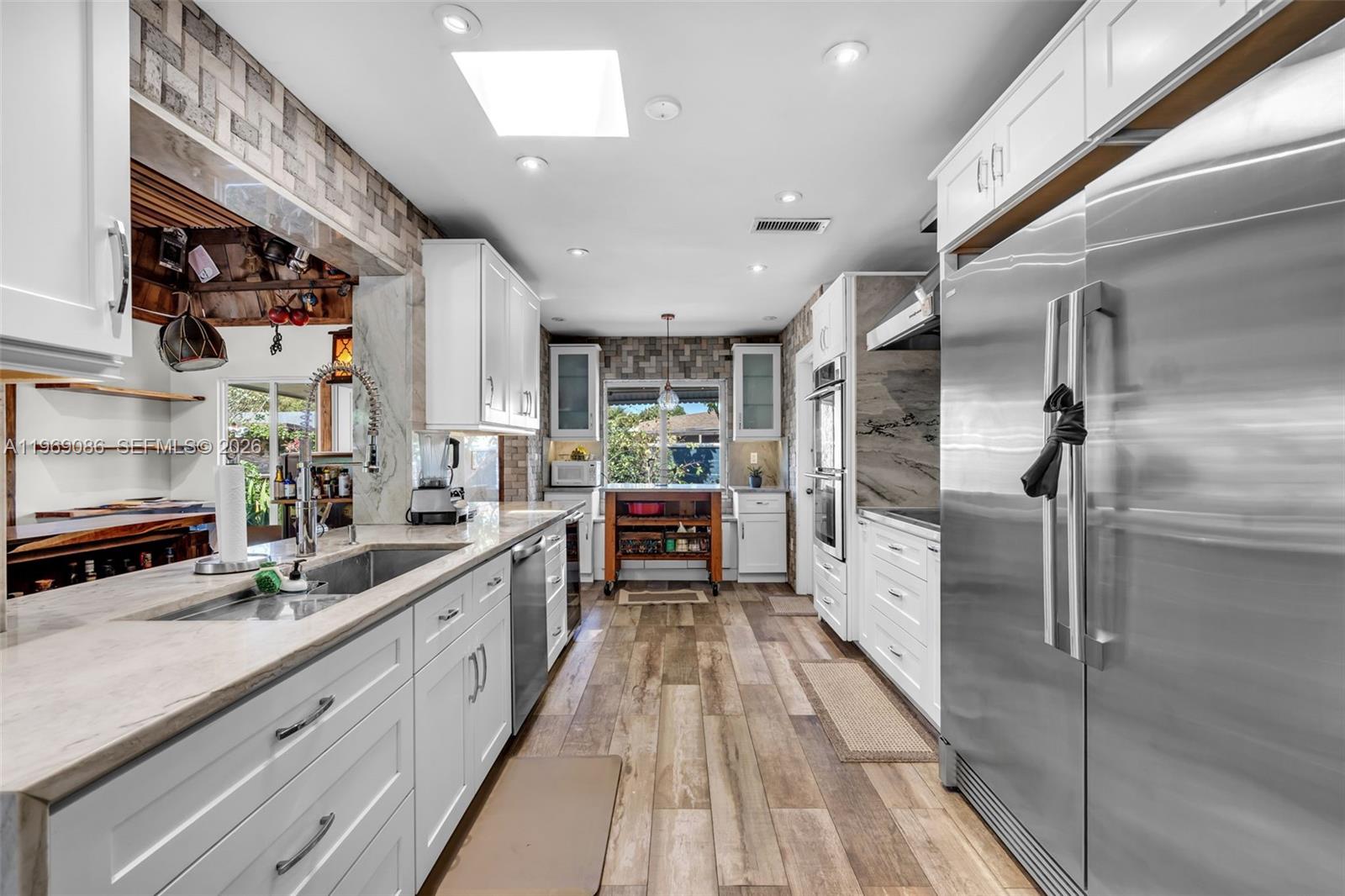 Beautifully maintained home now available in Hollywood, combining modern upgrades with timeless charm. Exceptionally maintained, showcasing custom woodwork throughout the home. The renovated kitchen is a standout, featuring stainless steel appliances, updated cabinetry, and stylish countertops designed for both everyday living and entertaining. Bathrooms have been recently upgraded with modern touches. The backyard provides a serene escape with a waterfall feature, perfect for outdoor enjoyment. Hurricane impact windows throughout that provide added safety and energy efficiency. Newer roof adds peace of mind and long-term durability. Situated in a quiet residential neighborhood with a peaceful setting. A rare blend of comfort, style, and peace of mind.
