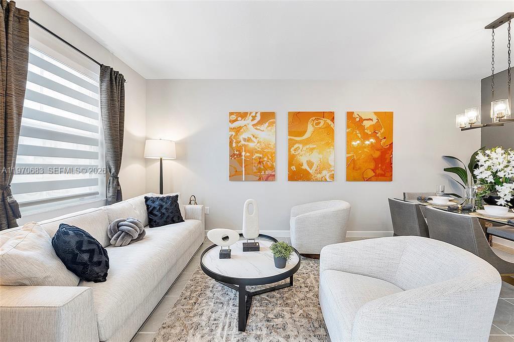 MOTIVATED SELLER! Don’t miss this incredible opportunity to own a never-lived-in former model home! This beautifully designed 3-bedroom, 2.5-bath residence features a spacious layout with both a Great Room & a separate family room, perfect for modern living. The stylish interior boasts a fresh contemporary color palette, while the sleek kitchen is outfitted with white cabinetry and stainless steel appliances. Ideally situated in a prime location, this home offers easy access to everything you need. Community amenities are nearing completion. Furniture & accessories are not included but available for purchase. Square footage is approximate. Experience the perfect blend of style, comfort, & convenience!