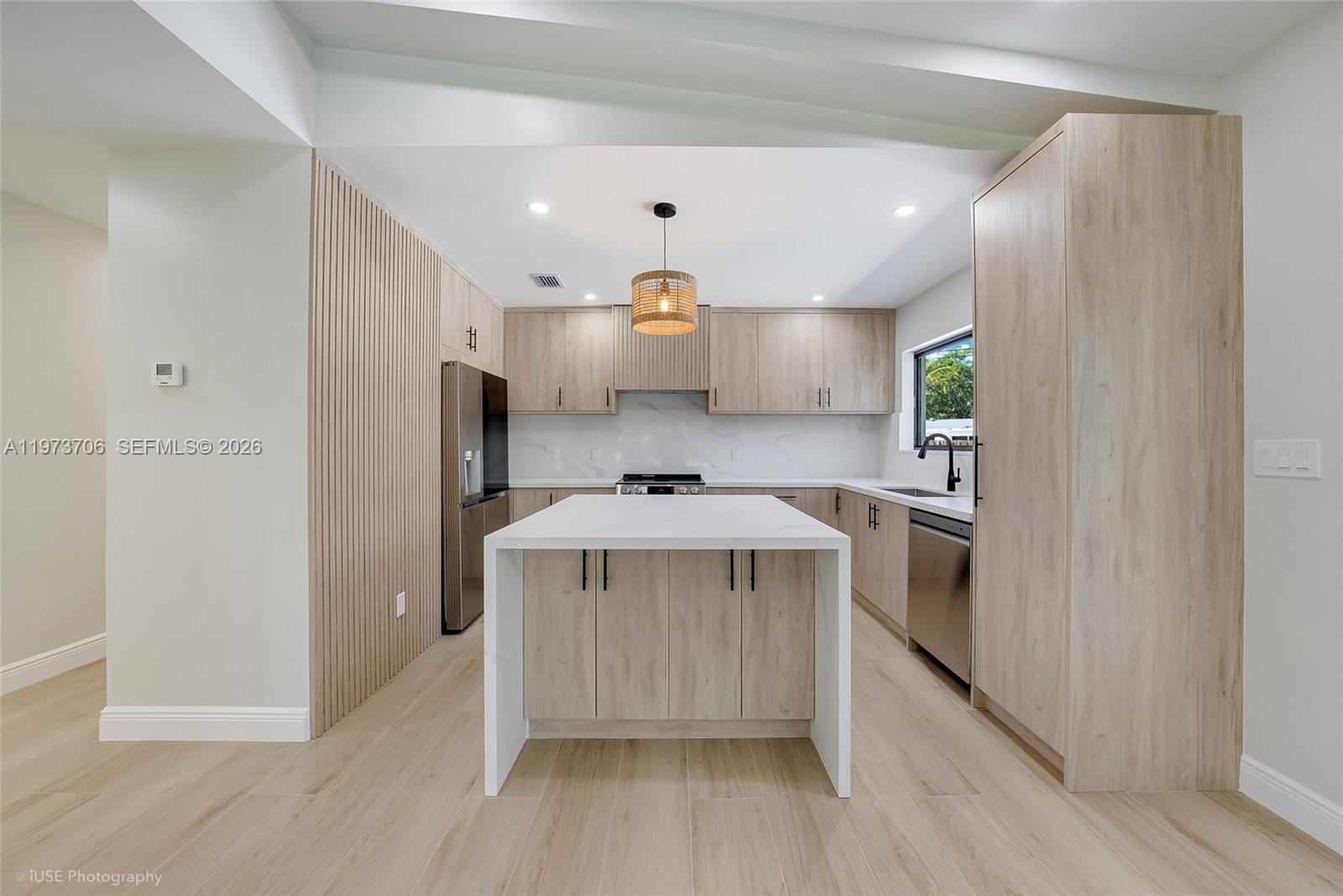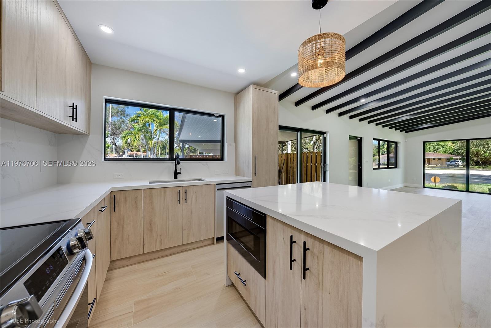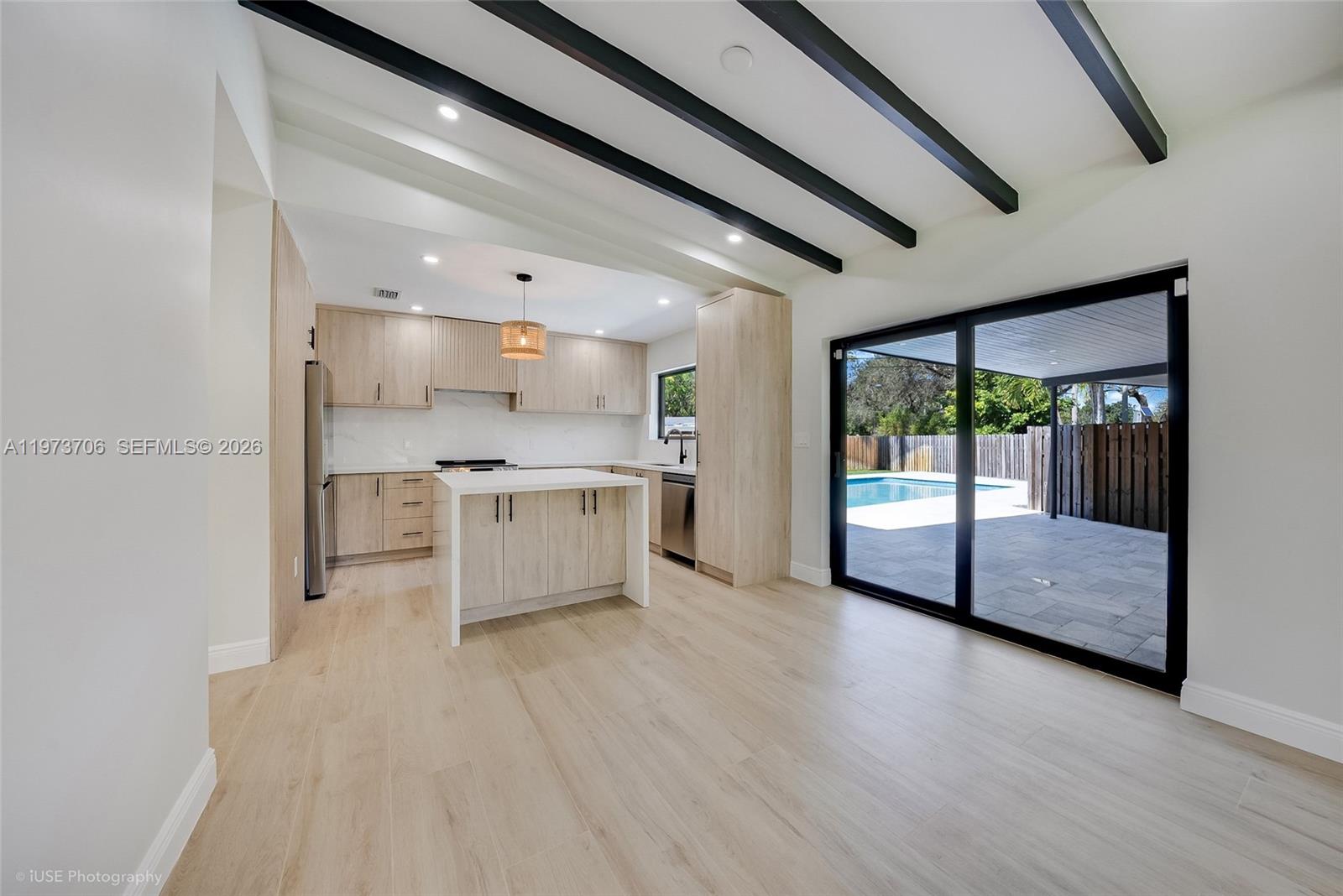 Mid-century modern living, reimagined. Nestled in the heart of historic Plantation Gardens, this fully remodeled 3BR/2BA Mid-Century Modern residence sits on an oversized 1/3+ acre corner lot along a quiet, tree-lined street. A rare opportunity to own a thoughtfully restored architectural gem in one of the area’s most coveted neighborhoods. The home blends timeless design with modern infrastructure upgrades, including impact windows and doors, a new 2025 roof with transferable warranty, new PVC plumbing, updated electrical with new panel and GFCI breakers, and a 2023 HVAC system. LED high-hat lighting, real wood beam accents, and shiplap ceiling detailing under the covered carport enhance its authentic mid-century character. The designer kitchen features wood cabinetry, stainless steel appliances, and an under-counter microwave for a seamless aesthetic. Sliding glass doors in every bedroom create effortless indoor-outdoor flow, while the primary suite enjoys a private deck retreat. Step outside to a true backyard oasis: resurfaced pool with new diamond-brite finish, new equipment, marble paver deck, lush landscaping, and well-water irrigation. Fully fenced for privacy. Spacious laundry room with storage and exterior access. Covered entrance, 2-car carport, and driveway parking for up to 10 vehicles. All renovations completed with permits.