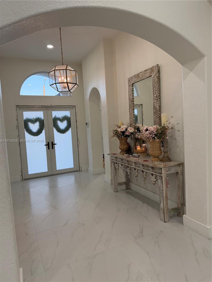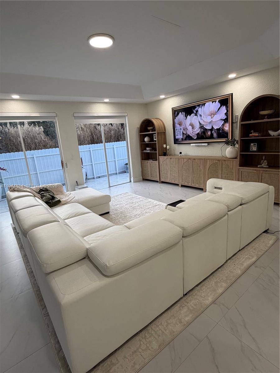 Welcome to this stunning and impeccably maintained residence in the heart of West Kendall! This beautifully updated 3-bedroom, 2-bath home features soaring high ceilings and a bright, open floor plan filled with natural light. The home has new 32x32 porcelain tile flooring throughout, offering a sleek and modern feel. The primary and recently renovated backyard and driveway. New hurricane impact doors & windows. The side yard is fitted with premium turf & added padding underneath, creating a safe & fun play area for children. New modern driveway with artificial turf inlays adds a unique architectural touch and curb appeal. Additional features include a 2-car garage, lush privacy hedges, and a quiet, family-friendly neighborhood close to top schools, shopping, and dining.