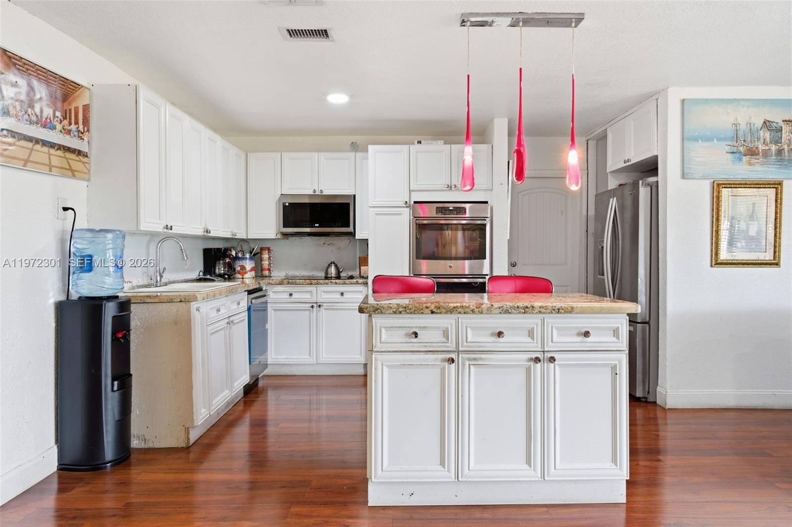 Opportunity knocks to own one of the best priced real estate investments with this 3BR/2BA corner lot home that features hurricane impact windows and a new roof installed 2023 that will save you $1000's of dollars from your home owners insurance. In addition the property features a very spacious living room area with an open kitchen that has been remodeled and has a granite counter top island for convenience and food preparations when entertaining. Additional features are stainless steel appliances, wood laminated flooring throughout, Florida room for extra living area space, split A/C unit in one of the grand bedrooms, remodeled showers, ceiling fans, french door leading to the Florida room, tankless water heater, and well water sprinkler system. Exterior features fruit trees and an all around fence.