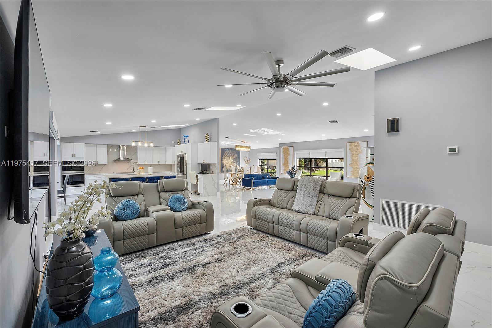 Experience refined waterfront living in this pristine 4 bedroom, 3 bath pool home located in Pine Ridge. Designed with a high luxury feel, this residence welcomes you with sophisticated finishes, open sight lines, and meticulous upgrades throughout. Large format tile flooring enhances the spacious layout, creating a seamless flow from room to room. The impressive eat in kitchen is a true showpiece, featuring an oversized island with storage, abundant cabinetry, and top tier appliances, all overlooking the dining, living, and family areas perfect for entertaining and everyday living. The expansive primary suite offers a custom walk in closet and a spa style bath complete with an oversized shower and separate soaking tub. A private guest suite can easily serve as a second primary, featuring its own walk in closet and full bath. With over 3,100 square feet of living space, this exceptional waterfront home provides the ideal setting for both relaxed family living and upscale entertaining.