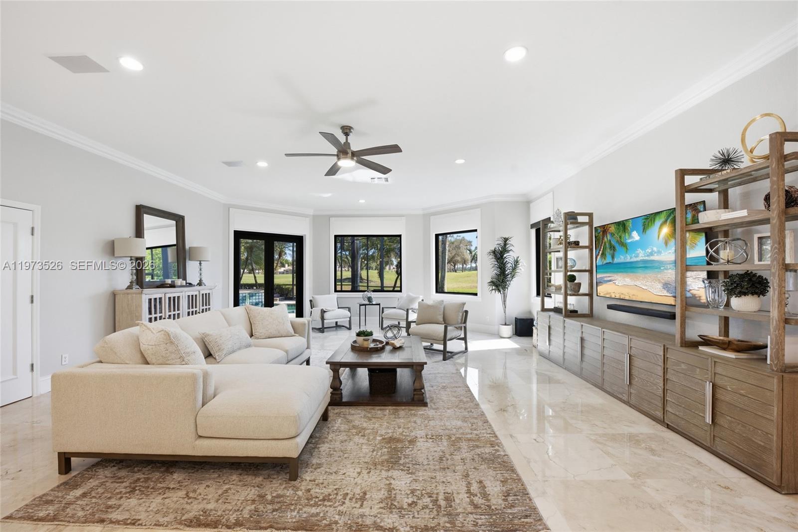 Extensively renovated with no detail overlooked, this move-in ready home blends modern luxury with everyday comfort. Located in the gated Weston Hills Country Club on the 5th hole of The Players Course, it offers sweeping golf views & a tranquil setting. A screened pool & spa patio create a private outdoor retreat ideal for relaxing or entertaining. Major upgrades include a new roof, full impact windows, doors, & garage doors, 3 new AC units w/ new air handlers, new pool pump, new pool & spa heater, & full pool automation. The home has been freshly painted inside & out w/ new flooring & baseboards throughout. The redesigned gourmet kitchen features over $50k in premium Sub-Zero, Wolf & Cove appliances, a Sharp microwave drawer, quartzite counters & backsplash, a 123” x 59” island, ceiling-height cabinetry, Kessebohmer pantry pullouts & a 60” Rachiele workstation sink w/ dual Waterstone faucets. Interior enhancements include glass stair railing, new half bath, frameless shower doors, chrome hardware, new lighting, switches, outlets, smoke detectors & 9 ceiling fans. Smart motorized blinds & quiet garage door motors add convenience. New laundry room offers dual washers & dryers, custom cabinetry & a water bottle filling station. The primary suite includes renovated his-and-her closets w/ extra storage under the stairs. Outdoor updates include a fully rescreened enclosure, new screen doors & 2 outdoor fans. A rare opportunity where every major improvement is already complete.