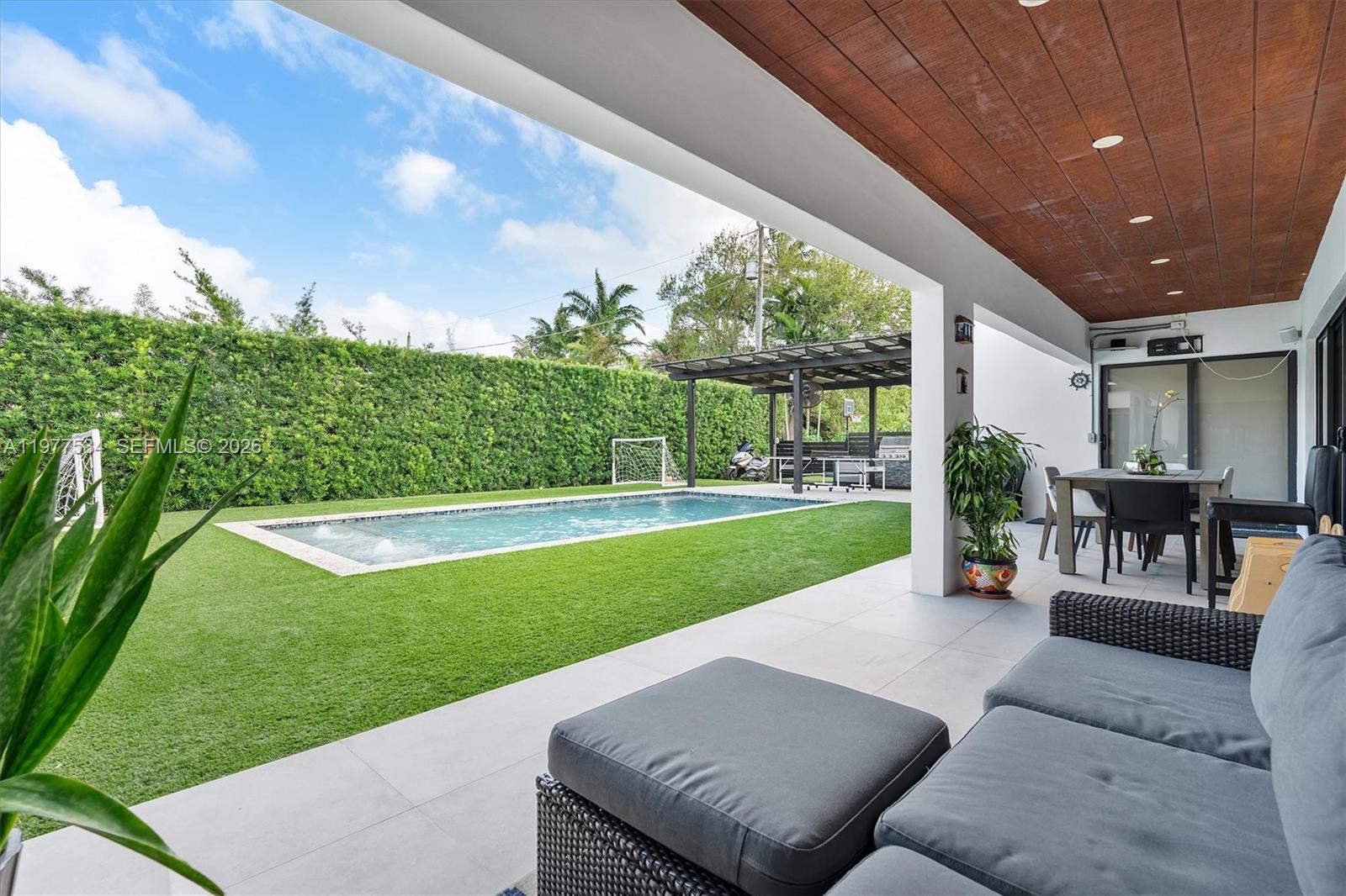 Introducing the Main Street Modern – A beautifully remodeled family home in the heart of Miami Shores, showcasing a striking white stone façade, and gated driveway with timeless curb appeal. Designed for today’s lifestyle, the home features a bright open layout and a spacious chef’s kitchen that flows effortlessly into the living and dining areas, perfect for both everyday living and entertaining. Step outside to a private backyard retreat with a gorgeous pool and fully equipped outdoor kitchen, creating the ultimate setting for relaxing or hosting family and friends. Thoughtful upgrades include solar panels for energy efficiency and stylish finishes throughout. Located on a main street in the Shores, this move-in ready home offers convenience, charm, and the perfect setting for family living just moments from parks, schools, and the vibrant Miami Shores Village.