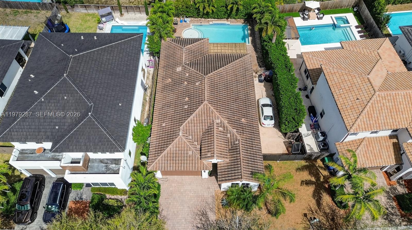 Impeccably maintained and truly stunning, this exceptional residence features ** SOARING 14-foot ceilings throughout the entire interior, including closets **creating a grand and airy atmosphere rarely found in today’s homes. The beautiful open floor plan is perfect for both everyday living and entertaining, complemented by a stylish wet bar that elevates the main living space. Thoughtfully designed with 8-foot doors, impact windows, and California Closets throughout, every detail reflects quality and elegance. Each bedroom features its own private bathroom, offering comfort and privacy for family and guests. Step outside to your private backyard retreat featuring a sparkling pool and beautiful pergola, perfect for relaxing or hosting gatherings. The home is situated on an oversized 7,200+ SqFt builder’s lot with ample room for an RV or boat along the side. Photos simply do not capture the true beauty and scale of this home, must see to appreciate.