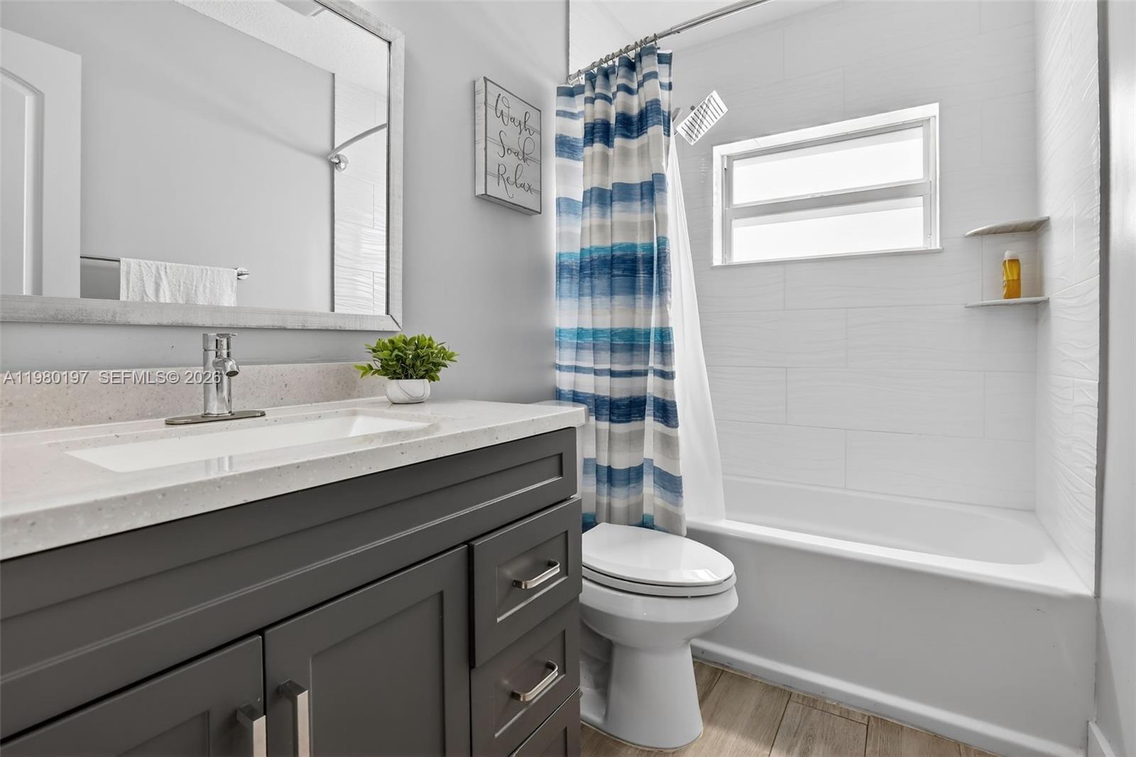 Your future home awaits in West Tamarac! Completely updated 2-bed, 2-bath single-family home on a fully fenced lot with a den perfect for home office or flex space. Welcoming front patio with carport, seating area, tile flooring & landscaping. Bright open-concept living & dining area filled with natural light. Modern kitchen features stainless steel appliances, drop-in sink with pull-down faucet & disposal, quartz countertops, backsplash & white cabinetry. The primary suite offers two closets with built-ins & beautifully renovated ensuite bath with new vanity in warm brown tones, gray tile flooring, step-in shower with frameless glass. Second bedroom includes built-ins & renovated second bath features new vanity, gray tile flooring & tub/shower combo. Upgrades include new quartz windowsills, gray laminate flooring & 6” baseboards throughout, new interior doors & hardware, recessed lighting, new dining fixture & skim-coated walls & ceilings. Major improvements include new roof, gutters & downspout (2023), new Carrier A/C & air ducts (2024), blown attic insulation, smart thermostat, floodlights & impact windows & doors. Relax or entertain in the private backyard with covered patio, wood-plank ceiling, dimmable recessed lighting & ceiling fan. Shed, Ring doorbell, 4K DVR security cameras & window blinds convey. Additional upgrades, a must see! Low HOA offers access to the private Westwood 6 pool & clubhouse. Near Tephford Park, shopping, dining, transportation & schools.