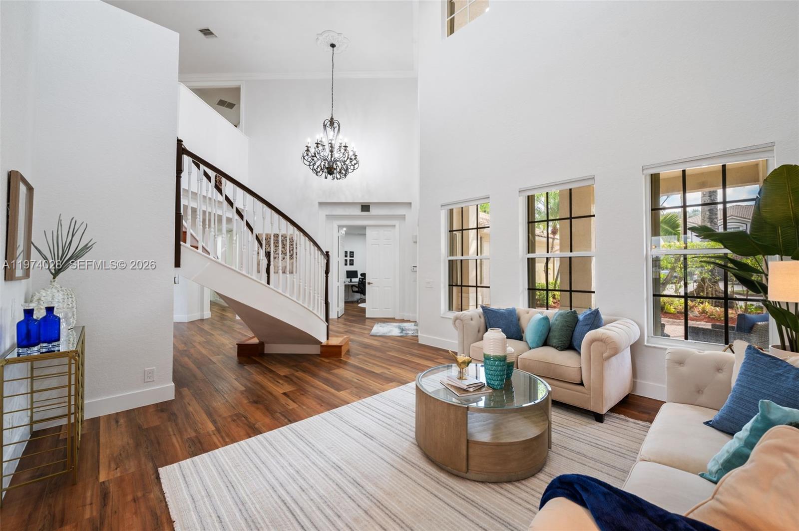 Million $$$ Lake View! You can Personalize a Home with decor, but the view is one of a kind! Weston Hills Country Club Masterpiece in Victoria Isle. Enter into Refined and Sophisticated Living. The Expansive living spaces (over 5,300 sq ft under air) are both Luxurious for Entertaining & Comfortable for Everyday Living. A Grand, Floating Staircase greets you at the Foyer, and leads to the Private Master Retreat. The Children's Wing features its own Staircase. Natural Light and Fine Finishes fill Every Room. The Distinct Architectural Design easily functions as a Multi-Generational Home or a Large Family Home. ADDITIONAL ROOMS include A Designated Den, A 20x14 Game/Play/Media Room, a 19x13 Additional Room/Library/Office w/ Built-Ins that stay, and Guest Quarters with a 14x12 Bedroom (currently used as a gym), an en suite Bath, it's own entrance to the Exterior Circular Drive, a separate 1-car garage with a private entrance from the Guest Quarters. When you awake in your Master Retreat, enjoy your Morning Coffee from your Covered Balcony (26x12 ft). Start your day overlooking your Serene, Sweeping Lake Views & your Resort-Style Pool, Spa & Waterfall. Magnificent Sunsets will captivate you at the end of your day. Ambiance abounds! Renovated in 2023 in Today's Impressive Contemporary Style, with Fine Finishes and thoughtful attention to detail. A Feature Sheet is attached. Weston Hills is a Desirable, Upscale Community in Weston, known for its excellent security and A+ Schools.