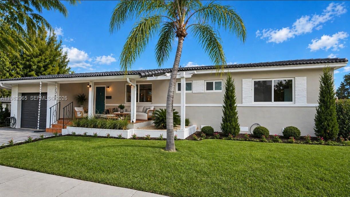 This single family home is in one of the most sought after neighborhoods, Silverbluff which is located north of Coconut Grove and south of Shenandoah. This is a beautifully renovated mid-century modern home that was tastefully done in an organic modern feel. The home is a 4 bedroom 3 bathroom home that is perfectly situated with 2 primary suites perfect for in-law, nanny, guest, or teen quarters. The living room has a custom designed electric fireplace that compliments the kitchen cabinets and kitchen backsplash tile with a gorgeous dining room mural that combines all the textures with the warmth of a home but the appeal of a modern condo. There is a designated room perfect for a theatre, gaming, family room, or children's play area. Part of the home can be easily separated to make a designated full in-law or a massive primary quarters. The home sits on a corner lot which provides two designated fenced in yard spaces. One space is perfectly designed for outdoor entertaining with wood decking tiles and string lights. The exterior does have a well system and pump for sprinklers, extra parking in the rear of the home, and exterior lighting. This home does have a full single car garage that can easily be converted into more storage space, flex zone, or a full gym. This is a must see home that has been tastefully done to meet any buyer's needs.