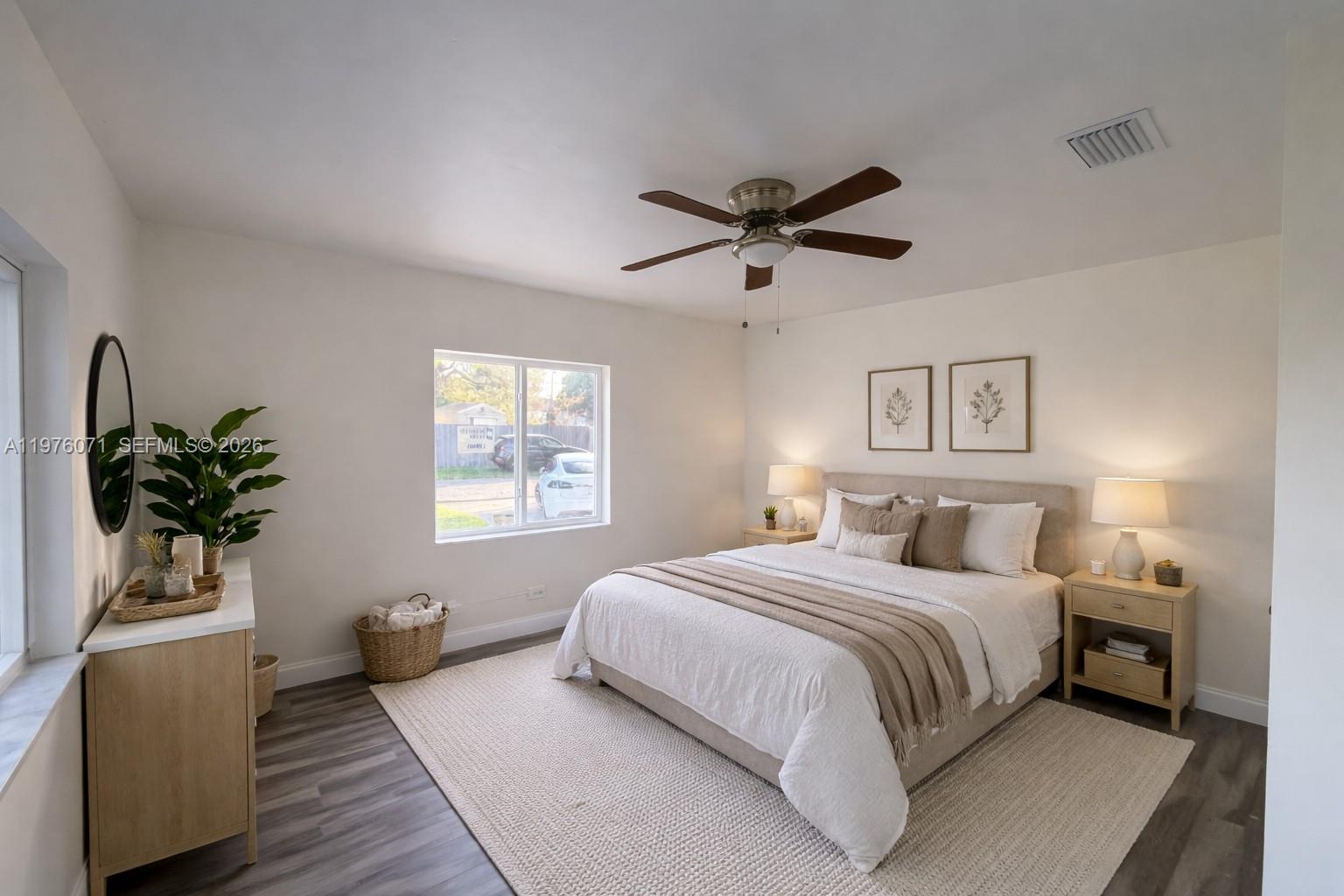 Newly renovated canal-front home, converted from a 2/1 to a 4/3, offering bright living spaces, a clean modern aesthetic, a new roof, and new A/C. Move-in ready, this property features an inviting layout and sits next to a canal. Located on a dead end street for extra privacy. Photos have been AI-staged to illustrate furnishing and design possibilities; actual furnishings and décor are not included.