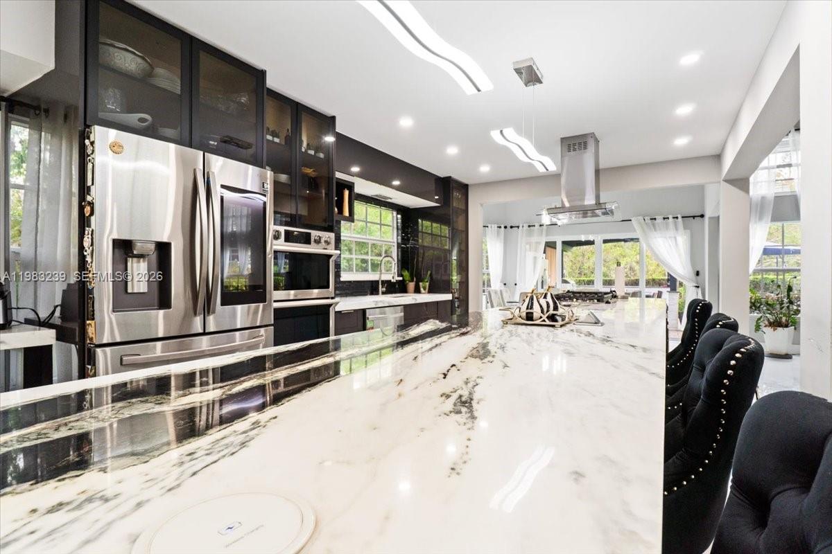 NEW LISTING! Completely remodeled with a sleek, modern design, this exceptional residence offers luxury, comfort, and outstanding functionality on one of the area's most desirable streets. The dramatic great room welcomes you with soaring wood ceilings and a brand-new floor-to-ceiling stone fireplace, creating a warm yet sophisticated focal point. The main level features elegant porcelain tile flooring, while the upper level showcases beautiful tile flooring, offering durability and a clean, modern look throughout.The expansive first-floor primary suite includes a private sitting area and a luxurious spa-style bath designed for ultimate comfort. Upstairs you will find three additional spacious bedrooms plus a large loft, which can easily be converted into a fifth bedroom, office, or media room. Designed for comfort, security, and efficiency, the home includes all impact windows and doors, three-zone A/C systems, a powerful 45KW whole-home standby generator, newer whole-house water system, and one well.