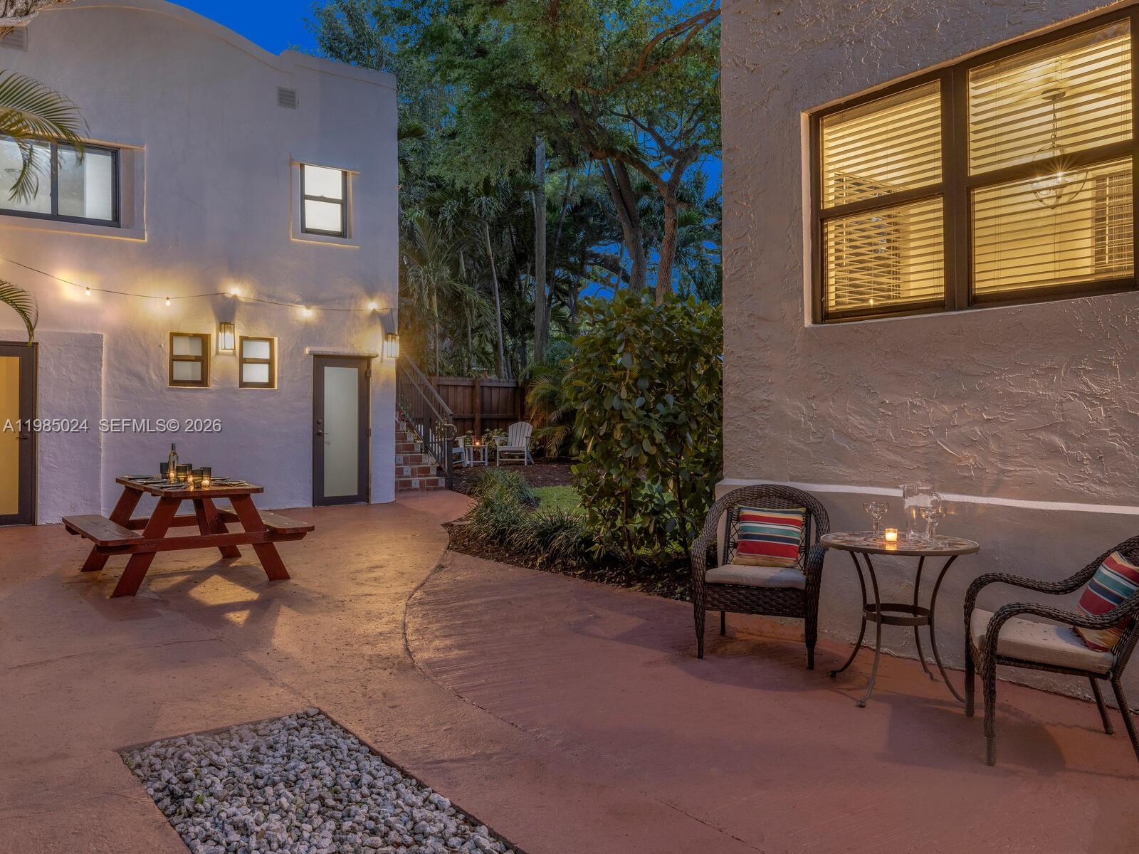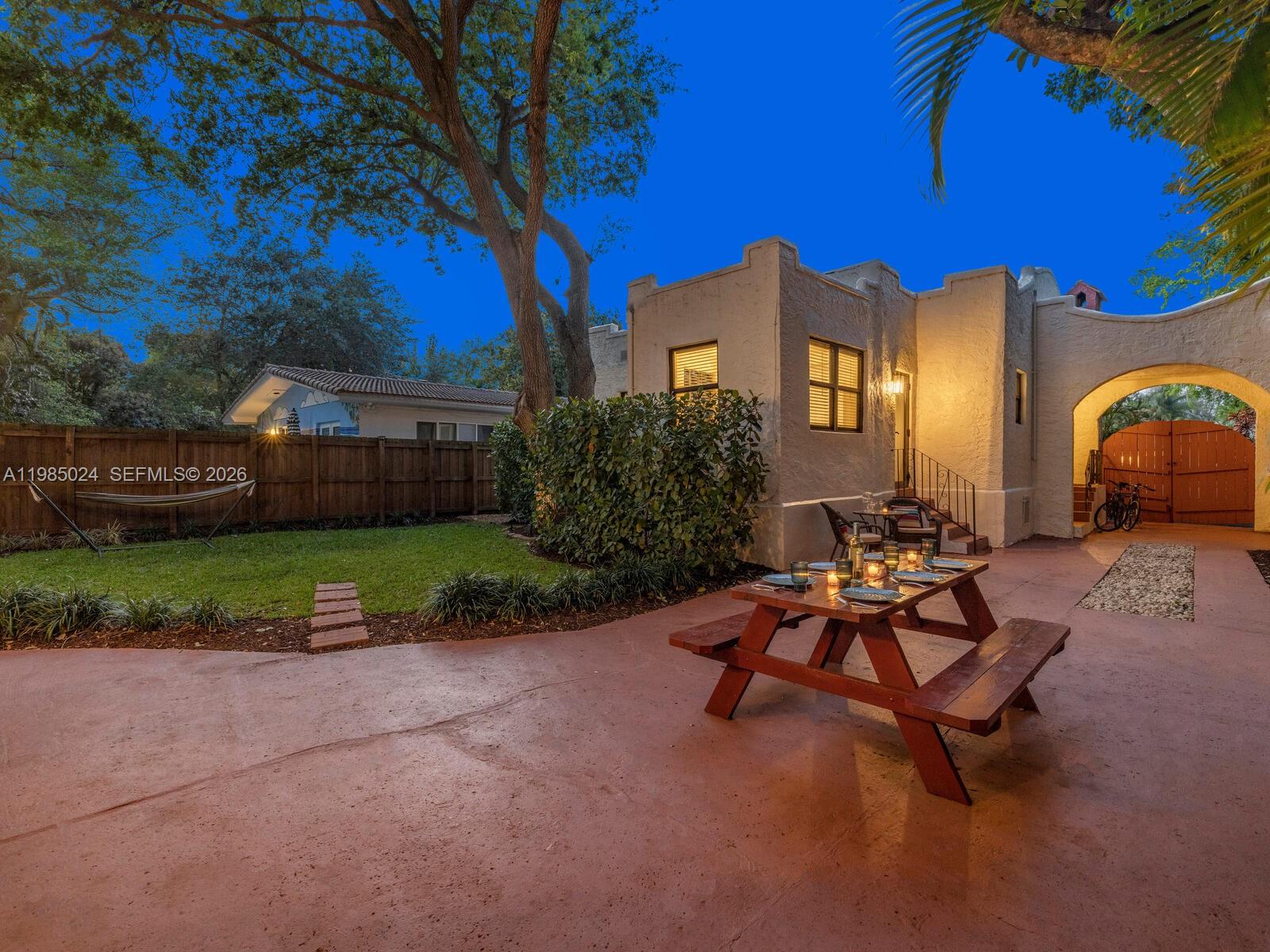 One property. Three distinct living spaces—a main house plus a two-story guest house with two separate guest units! Welcome to Villa Serenata—a rare 1925 Mission-style compound in Miami Shores offering a 3BD/2BA main residence and a detached two-story casita with TWO fully independent units—ideal for multigenerational living, guests, home office, fitness, or more. Much like a serenade drifting through the evening air, this romantic Mediterranean-inspired retreat unfolds with graceful rhythm, warmth, and timeless architectural detail. The 1,463 SF main home features bamboo wood floors, a sun-filled Florida room perfect for a lounge or office, and a living room with original fireplace and elegant columned archway leading to the formal dining area. The updated kitchen includes marble countertops, a breakfast bar, and a bright window-wrapped breakfast nook. Outdoors, enjoy a lush oak-canopied entertaining oasis with an entertainment esplanade, plenty of green space, and room for a pool. The 800 SF two-story casita offers two separate legal “apartments” with updated baths and kitchenettes plus storage. All in a fantastic non-flood zone location, just blocks to Downtown Miami Shores.