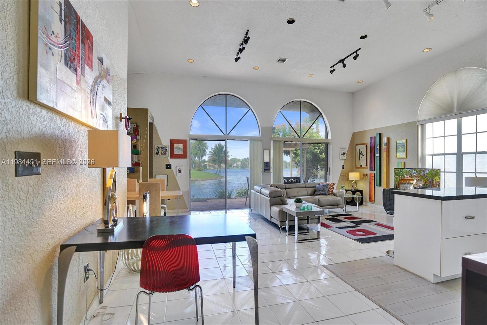 Framed by scenic tree-lined streets and lakes, this charming three-bedroom two-bath waterfront residence offers a rare opportunity to create your dream home in the sought-after community of Rock Creek, Cooper City. With 2,198 sq ft and a 2-car garage, this one story home welcomes you with soaring volume ceilings and an expansive living room upon entry. The open-concept layout flows into a spacious kitchen, family room, and dining area, all positioned to capture lake views. The generously sized primary suite features a private en-suite bath. Step outside to the patio, where tranquil water views provide the perfect backdrop for entertaining or simply unwinding with family. Roof (2018), refrigerator (2023), and AC (2025). The house is ready for your personal touch and sold As Is. Pet friendly community. Rock Creek residents enjoy beautifully maintained landscaping, winding walking paths, lakes, playgrounds, basketball courts, and outdoor fitness stations. Additionally, homeowners have access to the Cooper City Tennis & Pool Center on premises for a small fee: eight tennis courts, pool, basketball courts, playground, and a clubhouse with community activities. Cooper City is renowned for its family-oriented neighborhoods and top-rated schools.