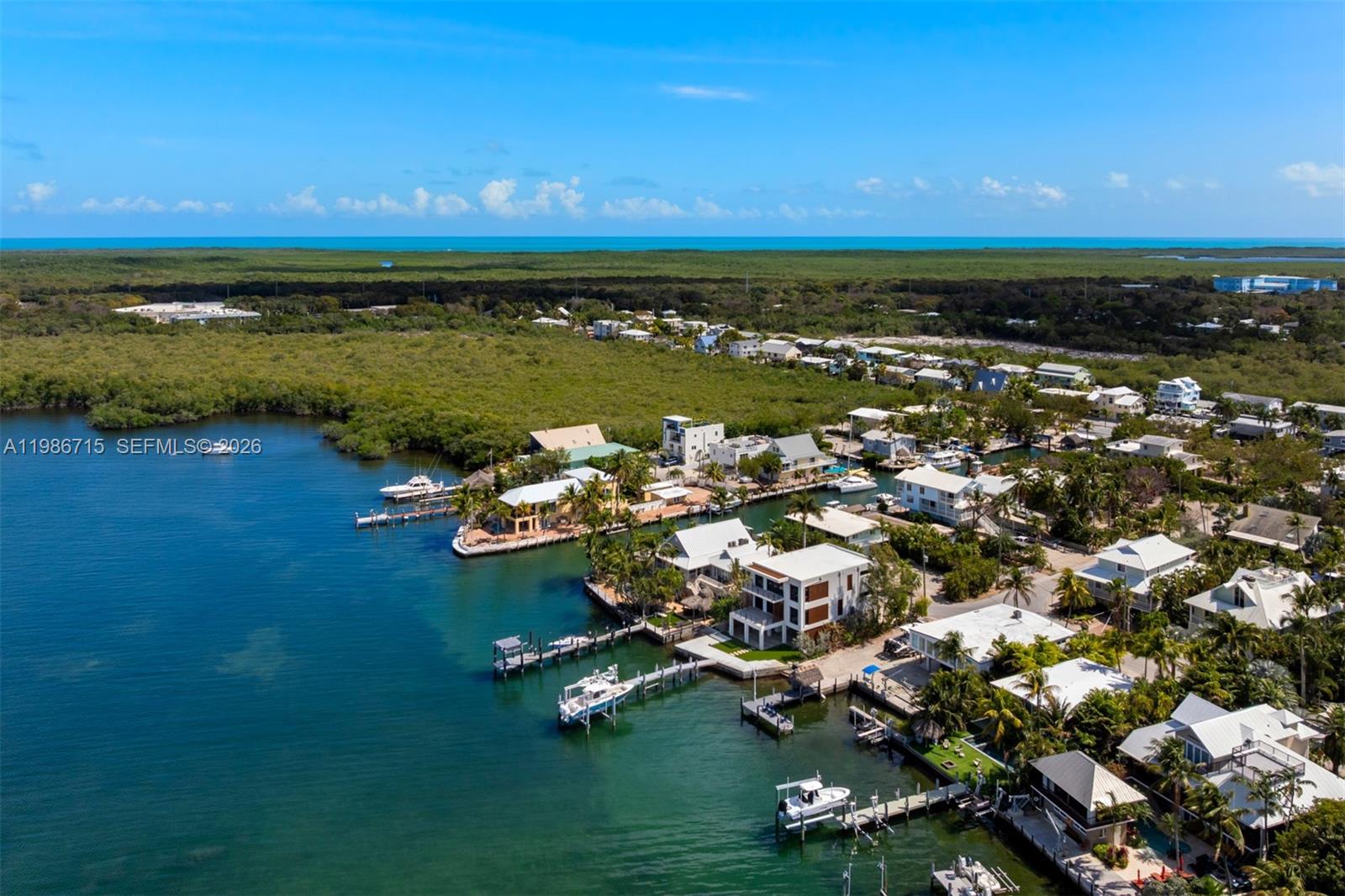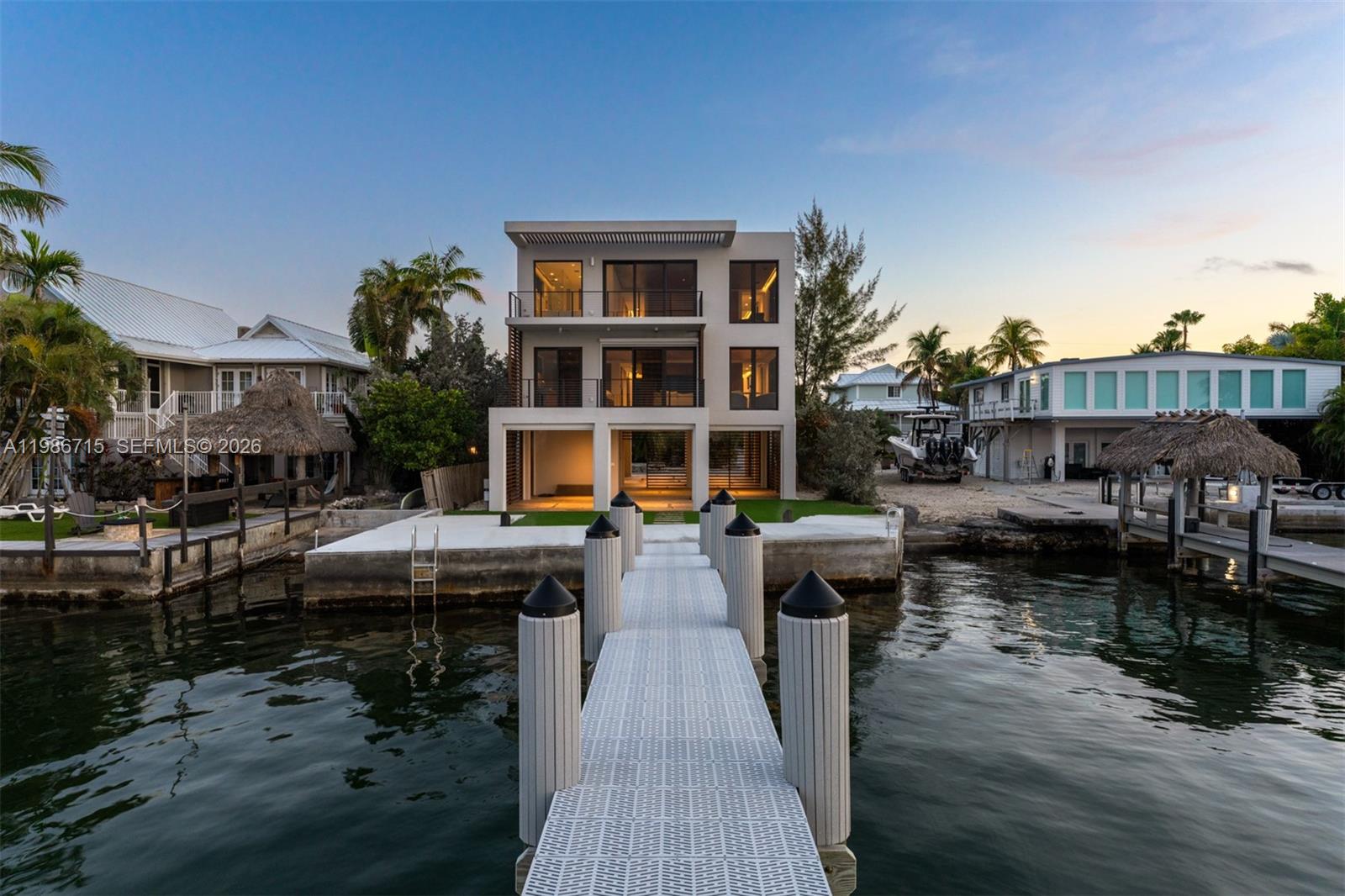 Modern bayfront residence in Key Largo, where minimalist architecture meets the natural beauty of the Florida Keys just 45 minutes from Miami. Designed by internationally acclaimed firm Resolution: 4 Architecture, whose work has been featured in Dwell, The Wall Street Journal, Architectural Record, and exhibited at MOMA, this architecturally significant waterfront home reflects a thoughtful balance of simplicity, light, and connection to nature. Constructed with ICF block and reinforced steel, the residence offers exceptional structural integrity and storm resilience while maintaining a sleek, low-profile form that complements its bayfront setting. Inside, the home embraces a refined minimalist aesthetic where clean lines, open volumes, and natural materials allow the landscape and water views to take center stage. Thoughtful design prioritizes both form and function, with extensive built-in storage and floating wardrobe systems that maintain the home's sleek architectural lines while providing exceptional usability. An open-concept floor plan centers around a chef's kitchen that flows seamlessly into the living and dining areas while maintaining uninterrupted bayfront views. Bayfront dockage with approximately six feet of controlling water depth to the seawall provides excellent boating access to Florida Bay and the Atlantic Ocean. Two boat lifts and generous dockage accommodate multiple vessels.