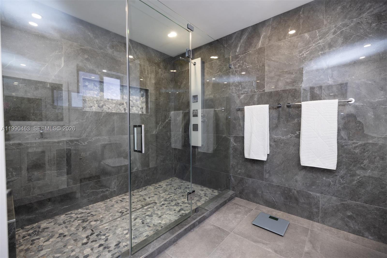 SHOWCASE HOME in the coveted guard-gated community of Poinciana at Sunset Lakes Estates. From the new porcelain floors and complete impact glass to the flat tile roof, it has been completely remodeled with impeccable taste and standards. Volume ceilings elevate the formal living room while the dining room overlooks the large covered patio. Gaze at the dream kitchen with never-used appliances that adjoins the family room. The layout offers 4 bed/3 renovated baths including 1bed/1bath on the first floor plus a in-law suite. The primary suite features his & her closets and a luxurious bath with dual vanity & walk-in shower. Low HOA. Great park right across from the guard house, excellent schools and shops & dining on Kendall Dr. just minutes away.