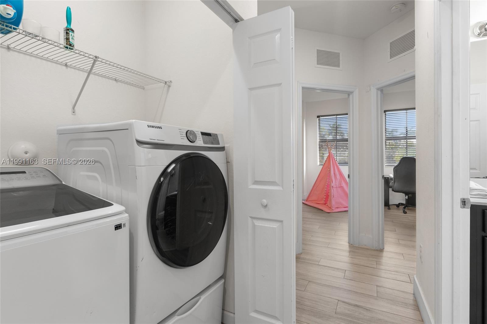 Beautiful 3-bedroom, 2.5-bath townhome with bright open layout and tile flooring throughout—no carpet. Spacious kitchen features granite countertops, stainless steel appliances, and a large breakfast bar. Large primary suite includes a very spacious walk-in closet and dual-sink vanity with glass-enclosed shower. Enjoy a private fenced patio with covered pergola, garage and private driveway parking. Conveniently located near the Florida Turnpike, Exit 6, major supermarkets, shopping, and dining. Move-in ready and ideal for first-time buyers or investors.
