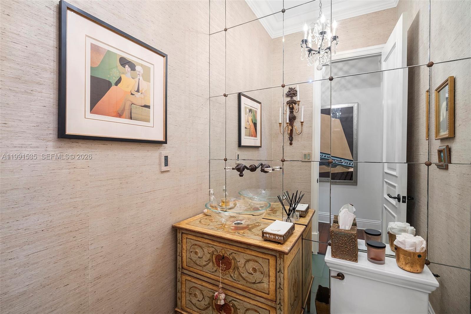 A refined and elegant designer-owned residence located in South Coral Gables. This beautifully appointed home offers 3953 sq ft of impeccably curated interiors under air on a 10,000 sq ft lushly landscaped lot. Features include, formal living room with fireplace, formal dining room, 3 bedrooms, 4 full bathrooms and 1 half bath, plus a private office, and dedicated gym. Spacious primary suite on the first floor with dual bathrooms. Open concept kitchen with breakfast nook flowing seamlessly into a comfortable gathering room, ideal for everyday living and entertaining, that opens to a pergola-covered patio perfect for a al fresco dining. The second story opens to a comfortable living area with lots of natural light, a perfect space for relaxation leading to the 2 bedrooms with ensuite baths.