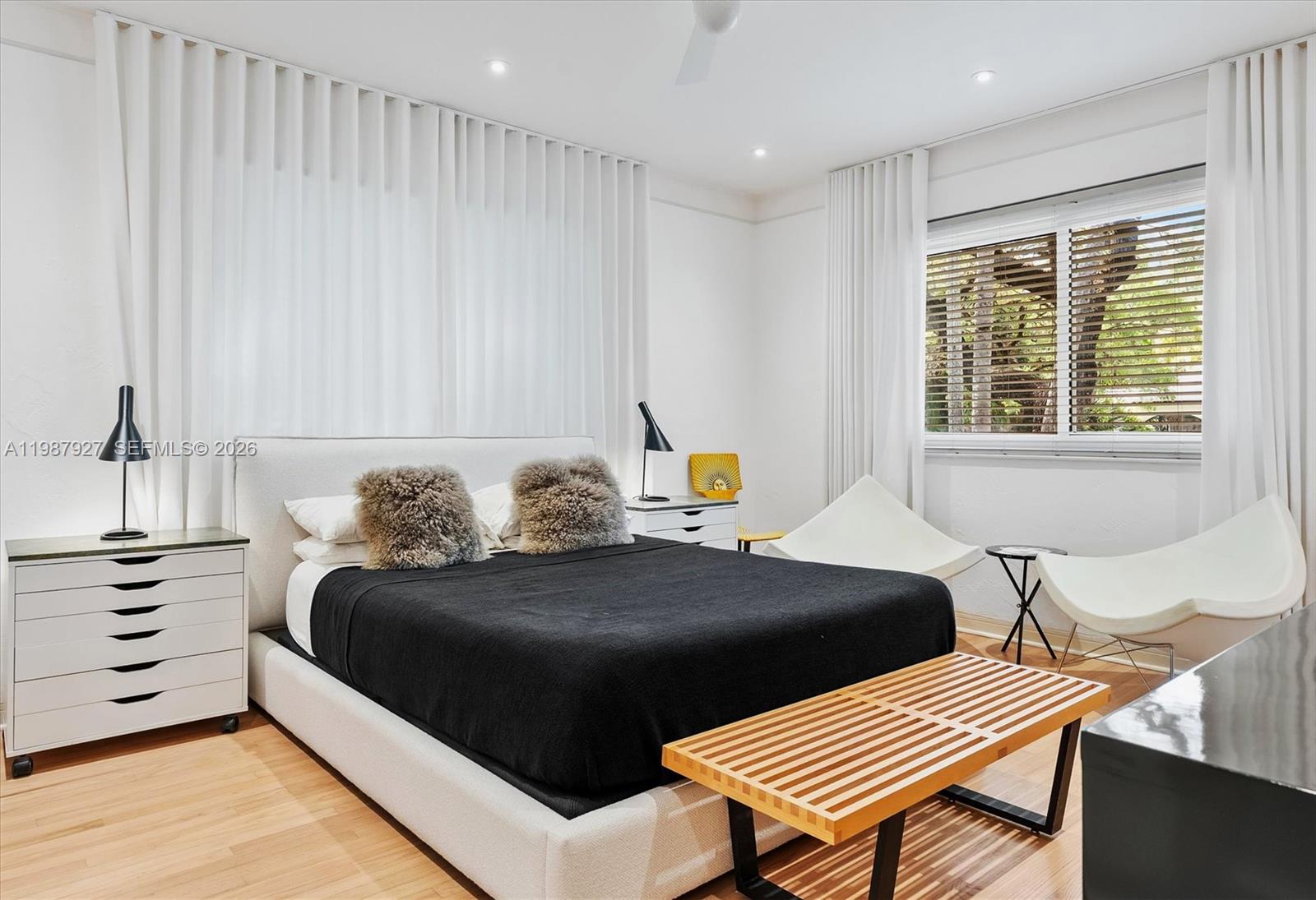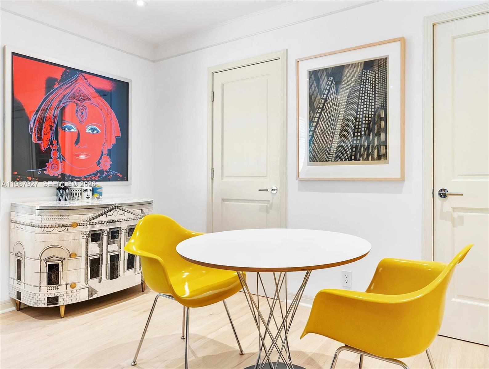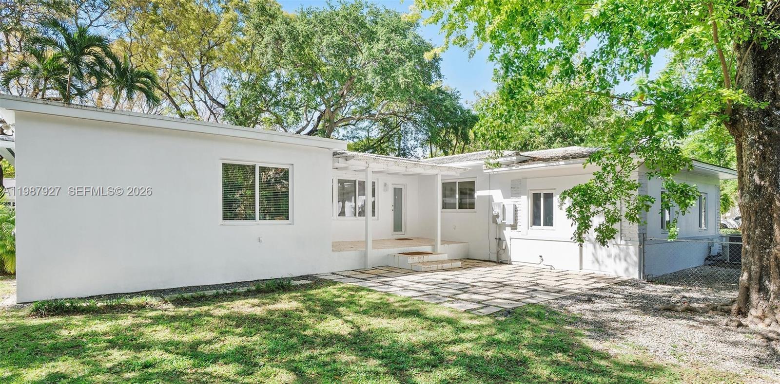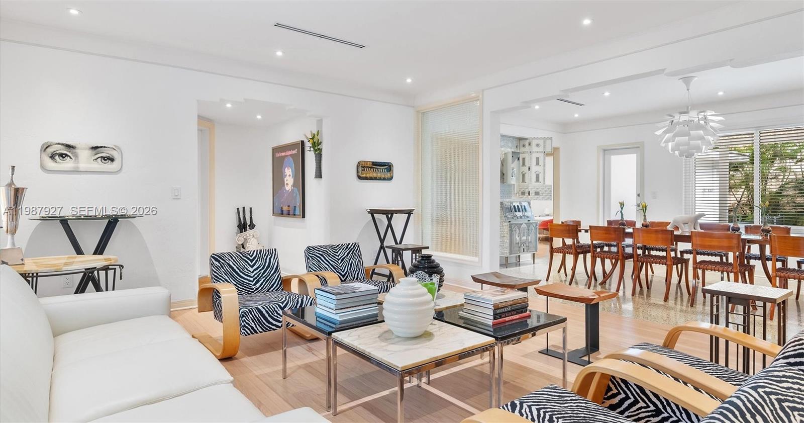 Welcome to Villa Moderne — a rare and iconic Streamline Moderne residence designed by renowned MiMo architect Manfred Ungaro and completed in 1949. Beautifully reimagined, this home blends architectural history with modern luxury. Situated on a prominent 11,300 SF corner lot, the residence offers 2,204 SF of living space, featuring 3 bedrooms, 3 bathrooms, and a powder room. Natural light fills every room through impact windows, highlighting elegant interiors, Red Oak hardwood floors, and a stunning dining room with signature seafoam terrazzo. The chef’s kitchen, recently showcased at the Coral Gables Tour of Kitchens, is both functional and refined, with Snaidero cabinetry, Miele appliances, and a generous pantry. A stylish wet bar discreetly conceals the laundry area, enhancing both design and practicality. Set on a quiet, tree-lined street, the property offers exceptional outdoor potential, including pre-approved plans for a pool and terrace—perfect for entertaining or relaxing in privacy. Ideally located just moments from Miracle Mile, fine dining, and top amenities, with convenient access to Miami International Airport. A distinctive residence where timeless design meets modern living.