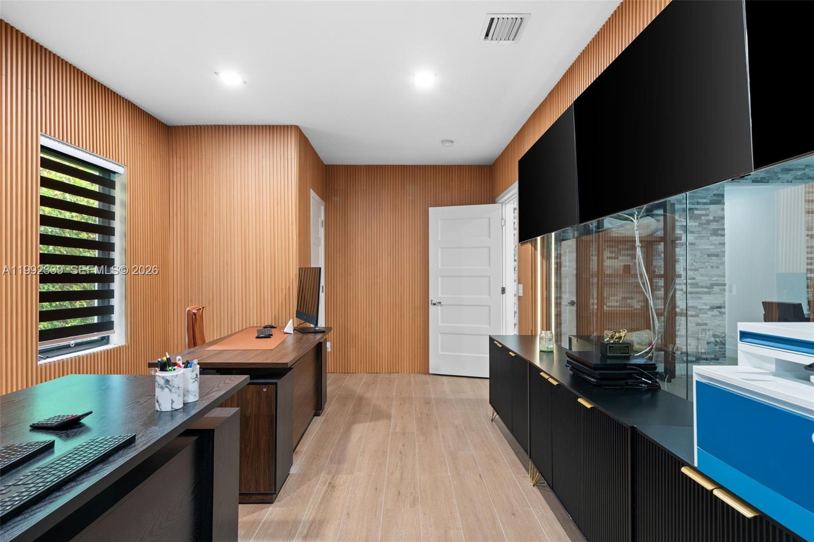 Fully gated and completely rebuilt in 2022, this modern home offers privacy, style, and contemporary design throughout. The sleek kitchen is designed for both everyday living and entertaining, featuring quartz countertops, a large island, ample storage, and high-end Bosch appliances. The spacious primary suite offers access to the front yard, a large walk-in closet with custom built-ins, and a spa-like bathroom with dual sinks, a soaking tub, and a separate shower. Featuring 4BD/4BA, the flexible layout includes one bedroom currently used as a home office. Enjoy a private back patio with low-maintenance artificial turf, perfect for relaxing or entertaining. Additional highlights include a welcoming foyer with a sitting area, a laundry/utility space in the two-car garage. Gate, garage, and sprinklers can be conveniently controlled from your phone, completing this turnkey modern home.