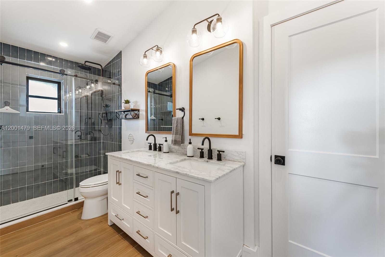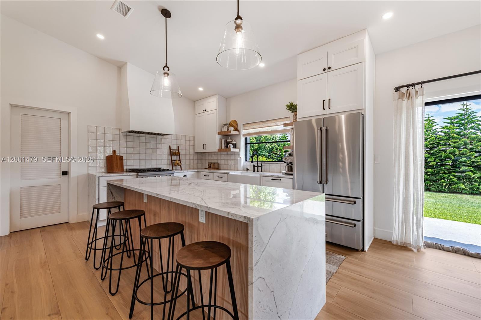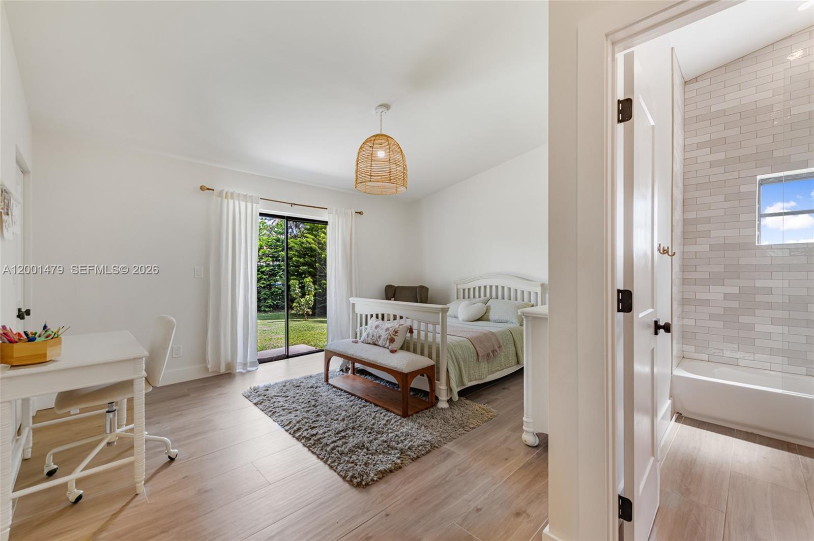 Step into your own private retreat in the heart of Plantation Acres. This beautifully updated home sits on a private 1/2-acre lot framed by lush evergreen hedges, offering a perfect blend of comfort and style. The designer kitchen features timeless white cabinetry, marble-style countertops, gas stove, large island, farmhouse sink, and stylish lighting. Soaring ceilings and a fully renovated interior with wide-plank flooring and smooth, modern walls create a bright, airy feel throughout. The home opens to a charming courtyard and expansive backyard with mango, tamarind, and guanabana trees. The expanded primary suite offers added space and a renovated bath. The spacious second bedroom feels like a true second primary suite, complete with its own en suite bathroom. Enjoy energy efficiency with $30 monthly electric bills via a $70K solar system + partial impact windows. Prime location with great neighbours, near Sawgrass Mills, dining, Panthers arena, and American Heritage. Fireplace. 2-car garage.