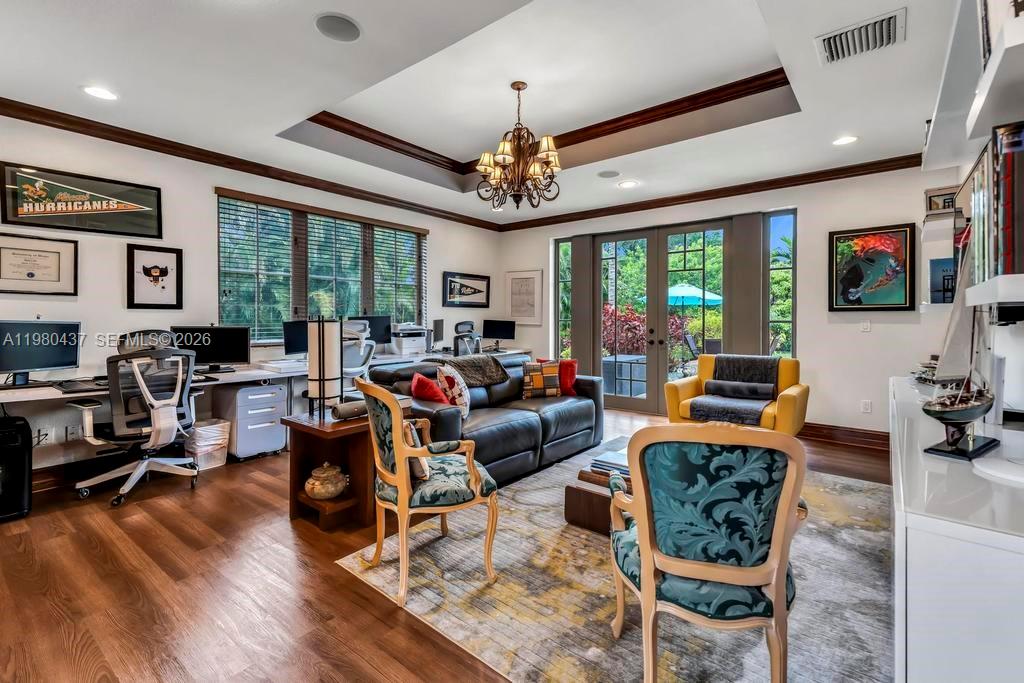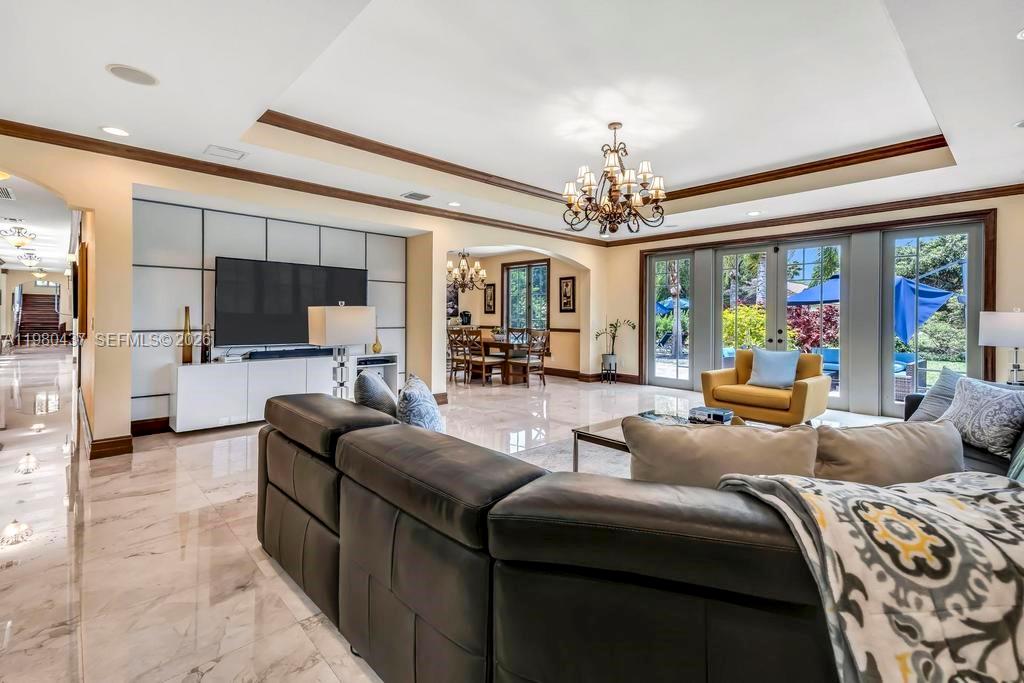 Tucked away in the exclusive enclave of Oak Hollow in Davie, this rare custom estate offers a level of privacy, elegance, & presence that’s simply hard to find. Set on nearly a full acre this two-story residence invites you into a lifestyle defined by space, light, & timeless design. You’re greeted by a grand entrance with striking marble floors and soaring ceilings that immediately make a statement. Natural light pours into the formal living room, where a beautiful fireplace creates the perfect balance of warmth and sophistication. Formal dining room sets the stage for memorable gatherings, seamlessly connecting elegance with everyday living. At the heart of the home, the gourmet kitchen is designed to impress, featuring rich wood cabinetry, granite countertops, and top-of-the-line appliances, all flowing effortlessly into the main living areas perfect for both intimate moments and entertaining on a larger scale. The first floor offers a private guest suite with its own bathroom, ideal for visitors or extended family. Upstairs, real wood floors lead you to the remaining bedrooms, each thoughtfully designed with its own bath, while the primary suite offers a true retreat complete with spacious walk-in closets with custom cabinetry, blending function with refined design. A resort-style pool and spa are surrounded by expansive outdoor living spaces, offering the perfect setting to unwind, entertain, and enjoy the serenity of your own private retreat.