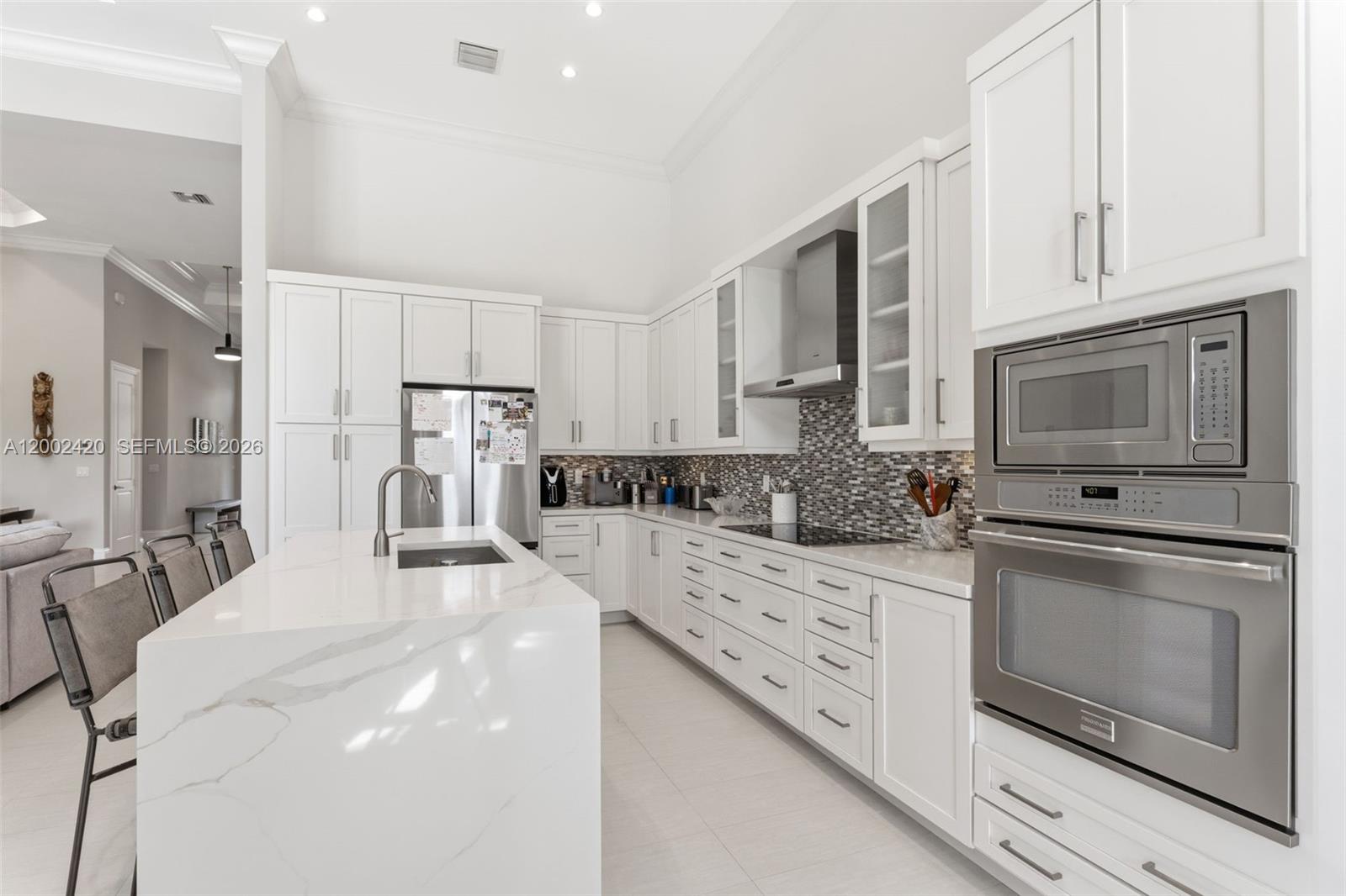 Experience modern South Florida living in this 2013-built 4BR/3.5BA executive pool home in highly sought-after Poinsettia Heights. With soaring 14'–15' ceilings and over 2,600 sq ft of refined living space, this residence offers a bright, open layout with walls of glass that seamlessly connect the indoors to the resort-style pool and patio. The chef’s kitchen features an induction cooktop, breakfast area, and generous cabinetry, flowing into spacious living and dining areas plus an additional family room. The expansive primary suite includes two walk-in closets and a spa-inspired bath with separate tub and shower.  A triple-split floor plan provides exceptional privacy: an en-suite second bedroom, two additional bedrooms, and a third full bath. Additional features include a large laundry room, powder room, 2-car garage, and abundant closet space.  Outside, lush landscaping surrounds the 28' pool, covered entertaining area, and outdoor shower. Tucked away in Poinsettia Heights yet minutes from Downtown, Las Olas, the beaches, and Wilton Manors, this property is a rare find.