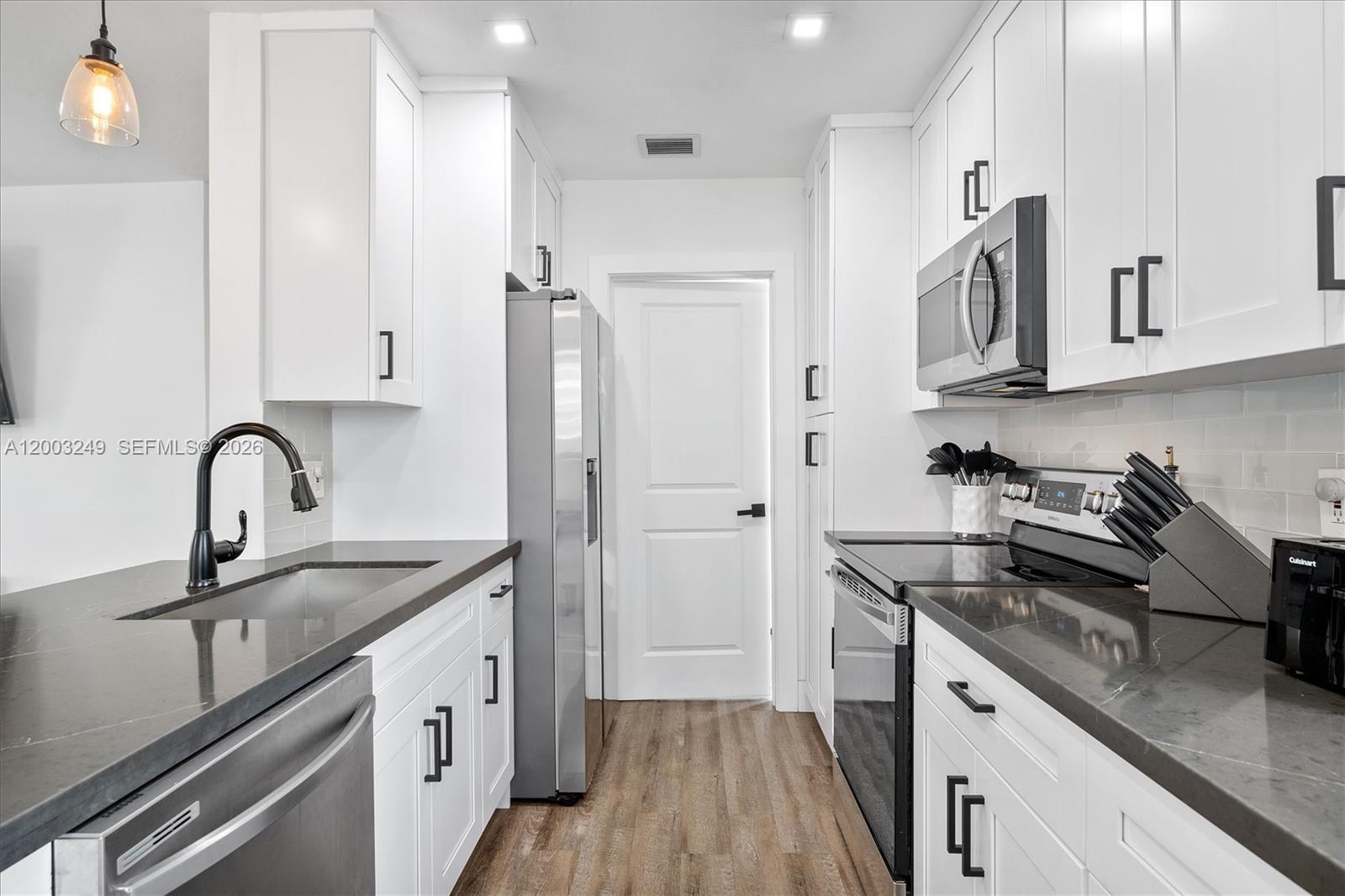 This single-family home blends modern efficiency and inviting charm, offering a turnkey experience with thoughtful updates throughout. Curb appeal stands out with a freshly painted exterior, a vibrant front door, and a new 2021 driveway and back slab. Inside, durable vinyl flooring flows through a comfortable layout, and the updated kitchen and bathroom reflect contemporary tastes. Major improvements include full PVC plumbing (no cast iron), a 2020 HVAC system, a 2020 tankless water heater, impact-rated windows and doors, a 2021 fence, refreshed porches, and a new backyard canopy for shaded outdoor living. Set on a quiet lot while still connected to local conveniences, this home delivers long-term comfort and peace of mind. Mortgage savings may be available for buyers.