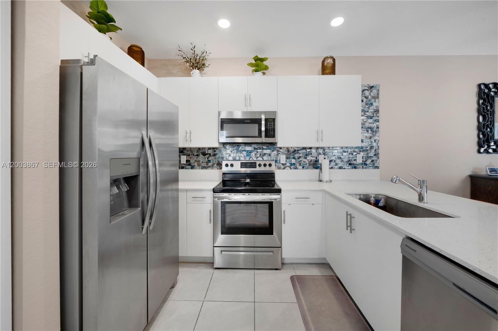 Rare end-unit 3BD/2.5BA townhouse with extra windows for abundant natural light. Ideally located just one block from the private residents’ entrance for quick, convenient access. Features include a 1-car garage plus driveway parking for two, with guest parking and a park directly across the street. The first floor offers a bright living area, half bath, kitchen with breakfast counter, dining space, and a flexible family room/den. Sliding doors open to a private patio with an aluminum roof—perfect for year-round outdoor living. Upgrades include programmable motorized patio curtains and blackout shades in all bedrooms. Upstairs offers wood flooring, a spacious primary suite with walk-in closet and en-suite bath, two additional bedrooms, and laundry. Gated community with resort-style pool and beach entry.