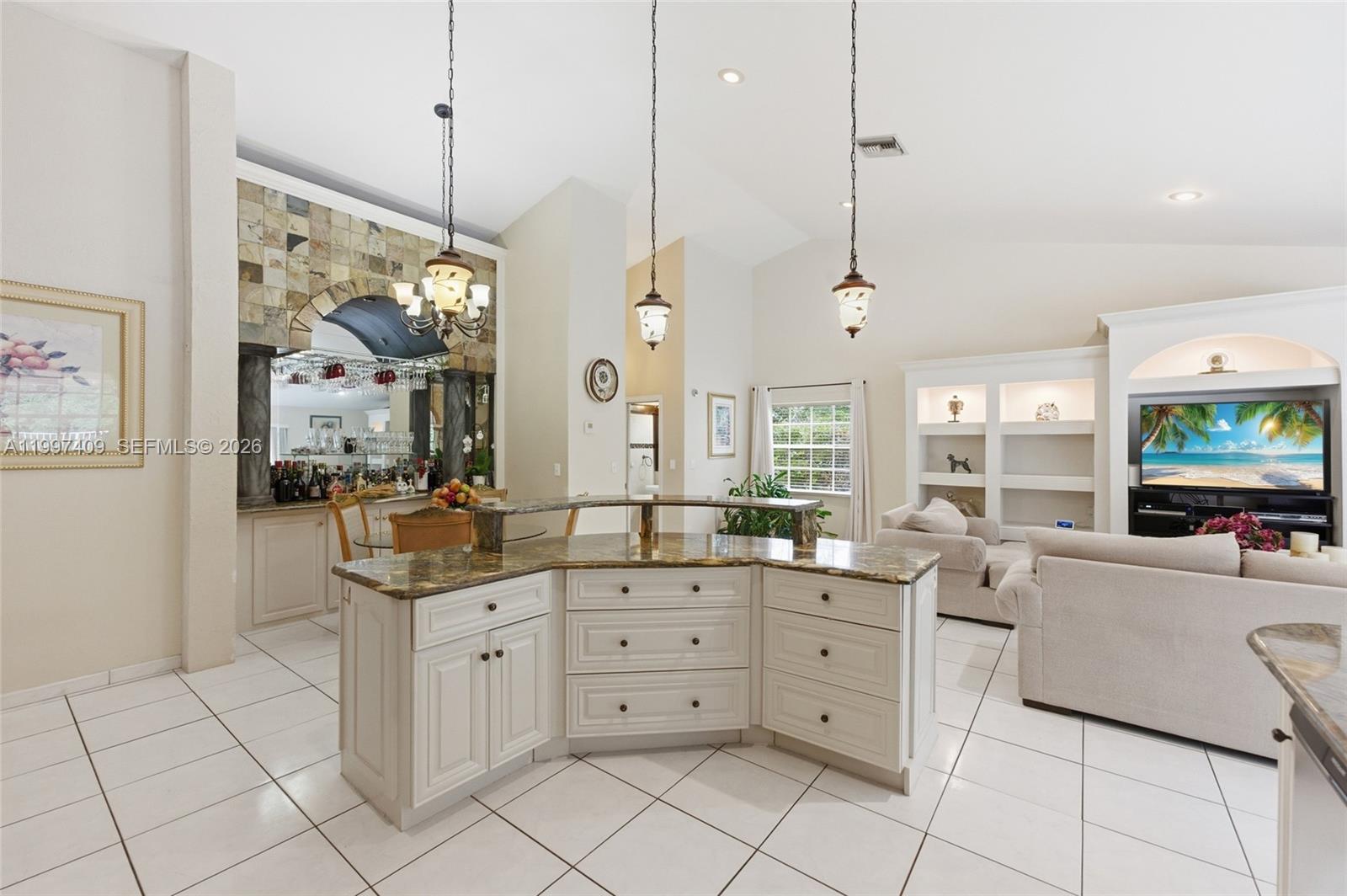 • Interior Feature:BreakfastBar, BuiltInFeatures, BedroomOnMainLevel, EatInKitchen, FrenchDoorsAtriumDoors, KitchenIsland, LivingDiningRoom, Pantry, SeparateShower, VaultedCeilings, Bar, WalkInClosets
