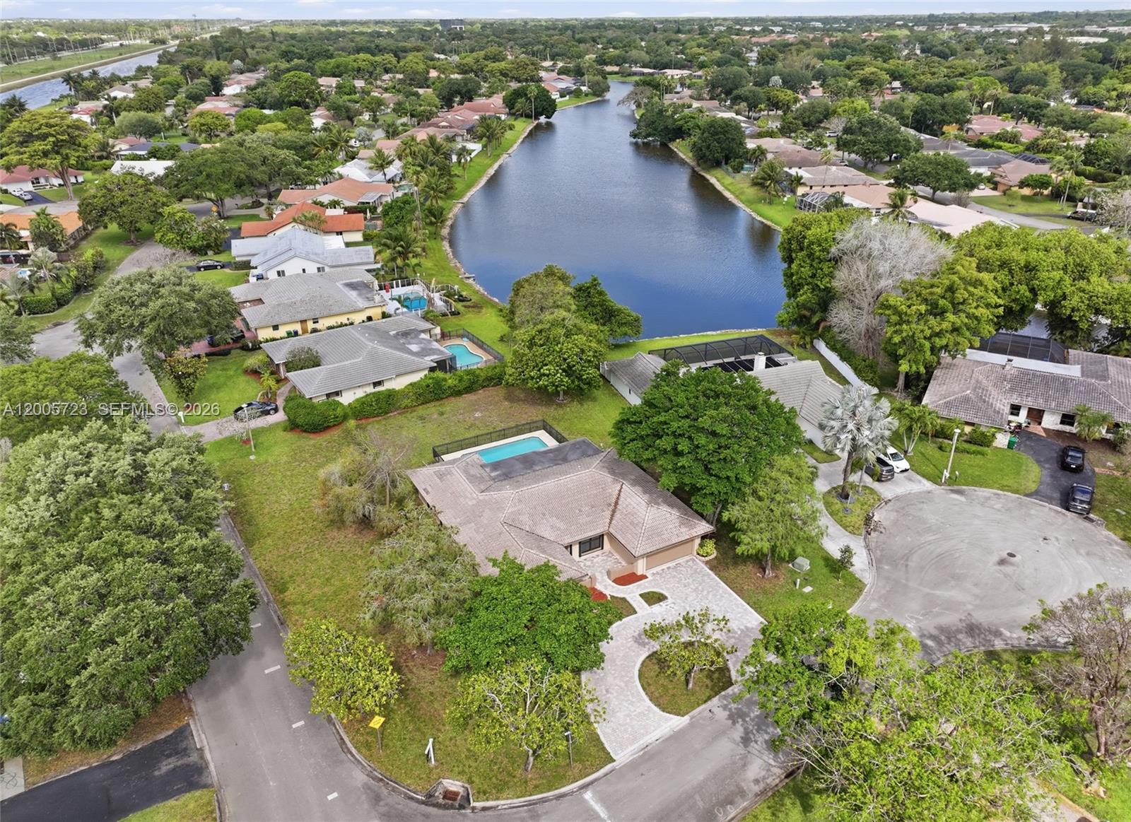 Welcome To This Beautiful 4 Bed /2 Bath Pool Home Located On An Oversized Corner Lot (Over 15,000 Sq Ft) With Water Views In Shadow Wood; Coral Springs! Perfectly Situated On A Private Cul-De-Sac. This Home Features A Spacious 2-Car Garage W/ 4 Additional Parking Spaces And A Circular Paver Driveway. Featuring A Welcoming Layout With Abundant Natural Light, Plantation Shutters, Tile & Laminate Flooring. Spacious Eat-in Kitchen With SS Appliances, And Plenty Of Storage. Enjoy A Seamless Layout As The Kitchen And Family Room Provide Direct Views Of The Pool And Covered Lanai, Making It Ideal For Year-round Entertaining. Primary Suite Offers A Walk-in Closet & Private Access To The Pool & Deck. The Ensuite Bathroom Is Upgraded W/ Travertine Marble, A Granite Vanity, & A Walk-in Shower. Secondary Bedrooms Have Closets And Ceiling Fans. They Share A Renovated Bathroom That Has Dual Sink Vanity, Sleek Quartz Countertop, & Frameless Glass Enclosure Shower W/ Premium Fixtures. Spacious Pool Featuring A Secure, Fenced Backyard Ideal For Pets And Gatherings. Upgrades Include A Hurricane-impact Garage Door And Full Storm Accordions And Panel Shutters Offering Full Insurance Discounts. Newer Ac And New Water Heater. Enjoy The Peace Of A Quiet Street With The Convenience Of Being Centrally Located Near Top-rated Schools, Dining, And Parks. No Hoa!