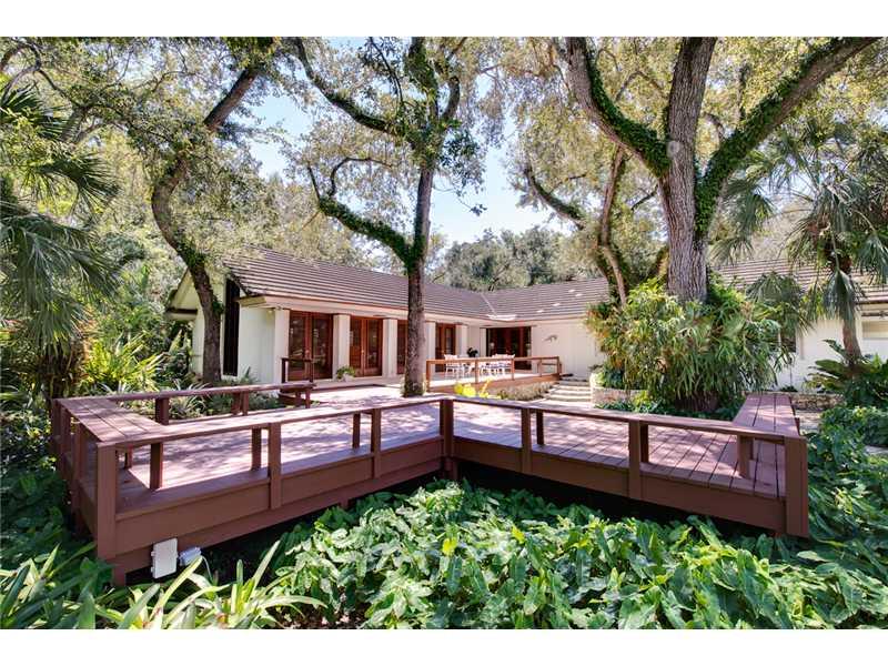 Designed by Thurston Hatcher in the Frank Lloyd Wright style, this gracious home sits on over 52,000sf of lush tropical gardens featuring a coral rock waterfall & extensive native plantings. Interiors encompass five bedrooms, expansive main salon with so aring open wood beam ceilings with views of the outdoor waterfall, formal dining room, spacious Mahogany kitchen with breakfast area, family room, oak floors throughout living areas, West African Mahogany doors and windows and spacious two-car carport.