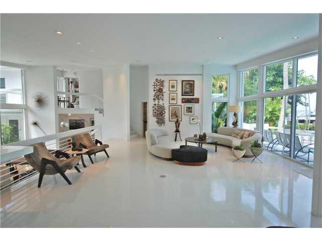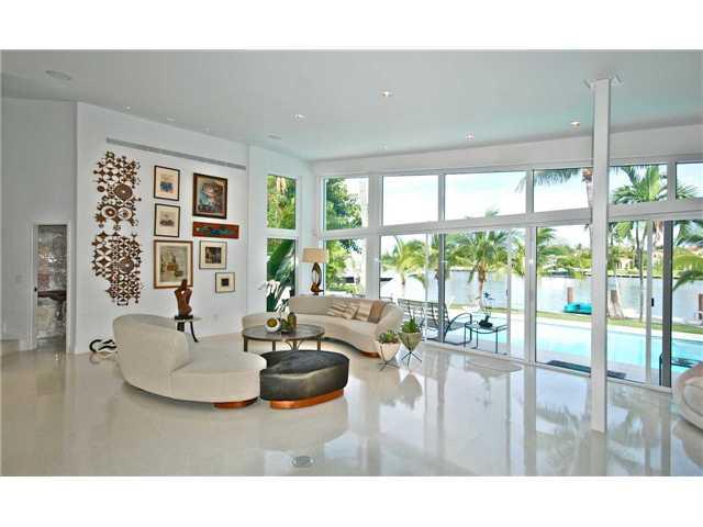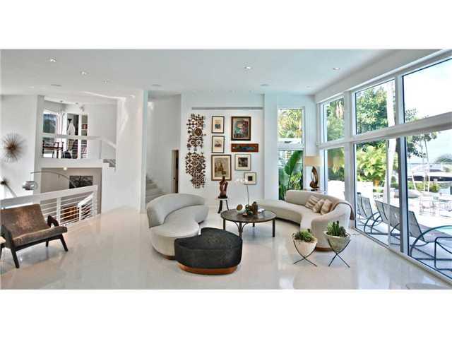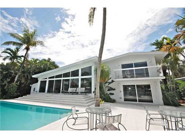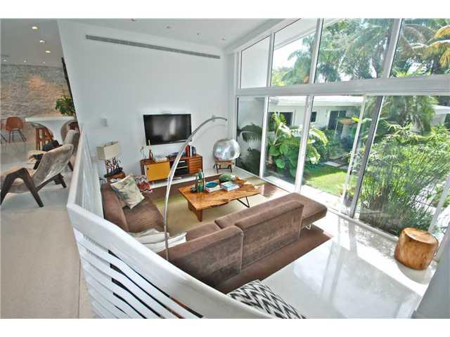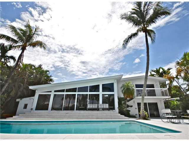Featured in Luxe magazine. Compl. renov. 2010, with its crisp stylish lines flawlessy preserved. Floor to ceiling glass & double height ceilings, split level loft design,white terrazzo floors, double island open kitchen. Views of Indian Creek, Biscayne Ba y & Downtown Miami. Oversized pool, barbecue, new dock & seawall.C Brk note.