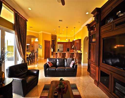 Gorgeous 6/4.5, plus Office/Gym & Game room, Triple Split Floor plan, 3 car bumped angle garage,Pool home. Features include Jerusalem marble floors throughout living areas, hardwood floors secondary rooms, upgraded kitchen with 42"cabinets, stainless ste el appliances and granite counters,onyx vanity counter tops, custom wood wall unit with Flat screen TV ,crown moldings,closet systems, Generous Lagoon pool & patio w/ travertine tile perfectly designed for entertaining ,outdoor kitchen, surround sound