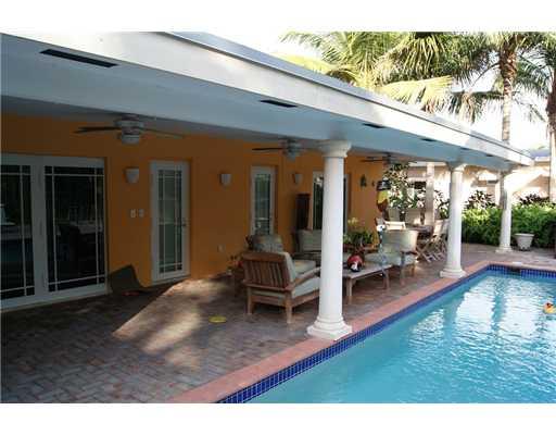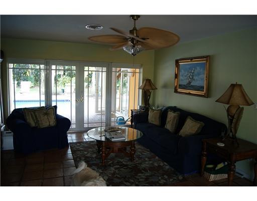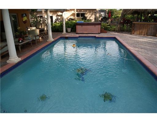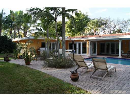 Pinecrest! 3 bedrooms, 2 baths home on quiet street! Skylights, impact glass, French doors and windows, spacious gourmet kitchen with breakfast area. Living and family room overlooks a beautiful large covered terrace, pool, hot tub, chiki hut with bar and fenced backyard great for entertaining! Large bedrooms. 2 car garage w/built in cabinets for extra storage with pull down garage screen door and 2 car Porte cachere with paved drive way. Beautiful landscaping.