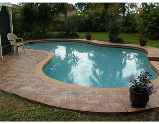 This pool home is priced to sell and will sell quickly. The 4 bedroom was converted into a dining room by the builder. Plantation Shutters, according hurricane shutters, granite,remodeled bath, french doors, screened in open porch, pool is in great shape, wooden pool deck, tropical landscaping, neutral tile floors, intercom system, living room with cypress built ins plus plantation shutters and a gorgeous family room french doors and white plantation shutters.Paddle fans&inside laundry.Low annual HOA fee.