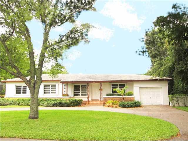 New Listing! 4 bdrm/3 bath pool home on a 10,000' lot south of Bird Road in area of much more expensive properties.Most of the house is in original condition but worth updating. Two Master suites on each end. Hall on south has original master with bath an d two other large bedrooms next to hall bath. LR/DR combination with wood floors. Fam.Rm has tile and sliding doors to screened pool. Eat-in kitchen. Garage with laundry area. Generator.Circular drive for guest parking. Firm price or higher expected.