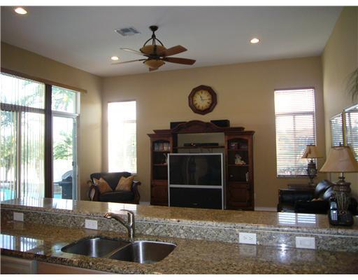 Welcome home to a FORMER Builders MODEL in Laguina Isles! This floorplan boasts a HUGE Living and Dining Room with SOLID WOOD FLOORING! The Immense Kitchen with 42" Cabinets and Granite Tops overlooks the Family Room covered in 20" Neutral Tile! All these rooms AND the Breakfast area look onto the HEATED Pool w/Sheer waterfall/Fenced Yard AND Lake! This is a SPLIT Bedroom Plan! The half and Guest Bath Boast GRANITE! Wall Accents/Jetted Tub in Master/Paver Drive and Covered Patio/Gutters and so much MORE!