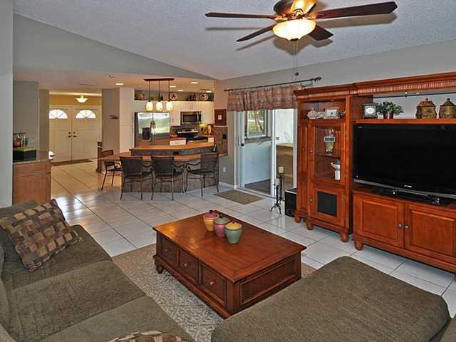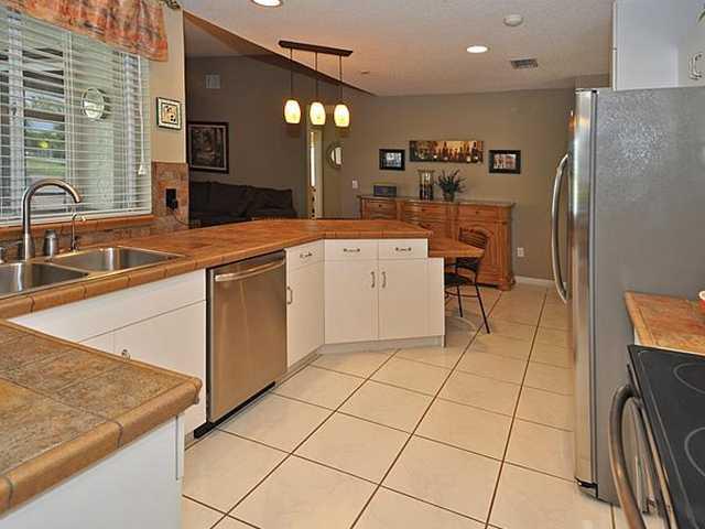 Lakefront split floor plan 4BR/3BA Flamingo Four model, situated on almost 1/3 of an acre corner lot. Double entry front door. Spacious kitchen with stainless steel appliances,tiled counters, under cabinet lighting and snack bar. Nicely upgraded Master Ba throom with granite counters and wood cabinets. Screened and extended patio, lake fed irrigation system. Plenty of room for a pool.