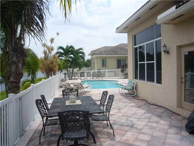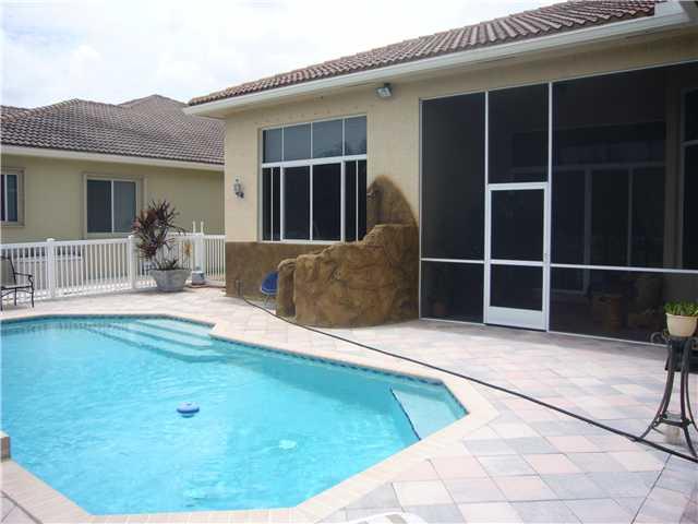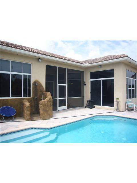The Malibu! Custom Patio with pool and private water views! WIDE open fllor plan boasts 4 bedrooms and a HUGE den (5th bedroom)-Custom tile at foyer and all bedrooms with WOOD flooring! Granite, Stainless & Cherry Kitchen overlooks Family Room and Breakfa st Area with views of the SCREENED Patio and lake/pool! HUGE master suite with custom ceilings! Master Bath with dual sinks/roman tub/upgraded plumbing! Custom Faux Paint-Paver Drive-CUSTOM ROCK outdoor shower on EXPANDED Patio! This is HOME!