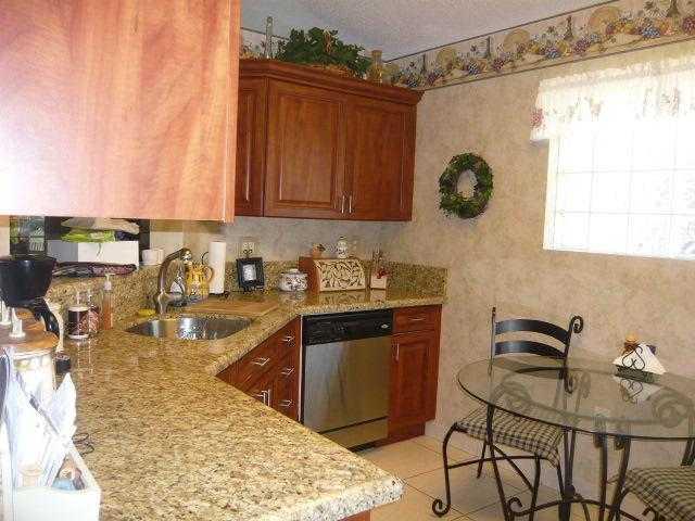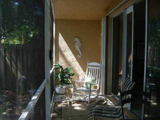Move in ready! Upgraded throughout:wood cabinets, granite counters,stainless appliances, eat-in kitchen, pass through with barstools . Bathrooms have been totally upgraded!! Floors are tile in living areas & laminate in 2 bedrooms. Freshly painted in neu tral colors.Enjoy the screened in patio and private yard with a pond. This is a guard gated community with pool, playground and fitness center. Maintenance includes lawn care, cable and security!! All Top Rated Schools