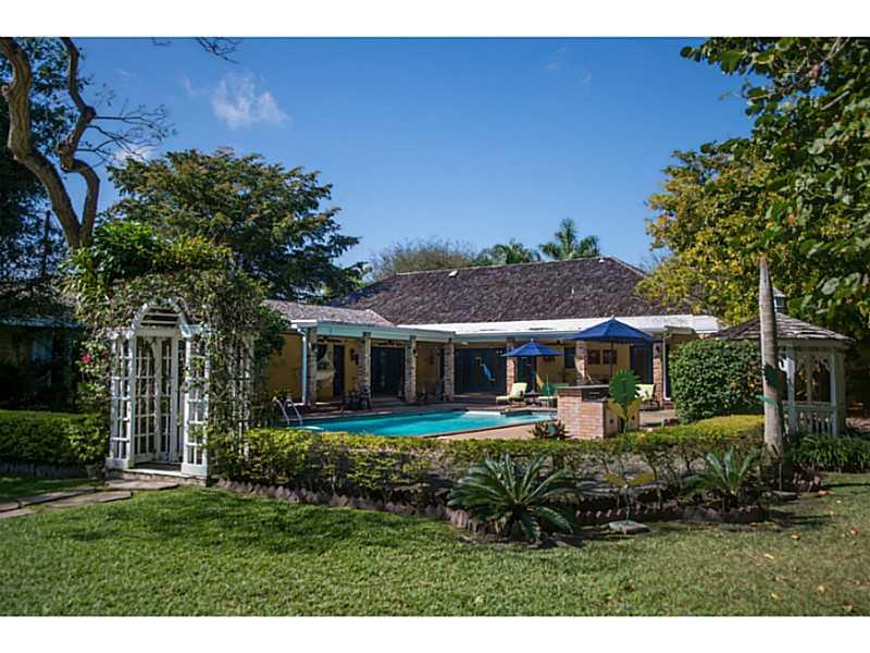 A gated Pinecrest beauty resting on over an acre of greenery has charm, elegance and splendor. Cozy up by the fireplace of this classic estate admiring the volume beamed ceilings, open floor plan, lovely Mexican style tile and wood floors, remodeled kitch en with breakfast area, plus a huge family room. Four of the suites offers the privacy of a full bathroom, positioned away from one another. Enjoy the seclusion and privacy the pool area offers complete with barbeque area, wet bar, and a charming gazebo.