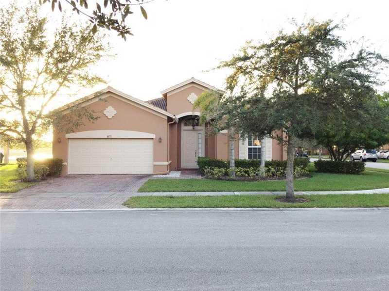 Nice 4 bedroom 3 bath home in the desirable community of the Isles at Weston located in an oversized corner lot. Tile in living areas and laminate wood floor in all bedrooms. 42-inch wood cabinets in kitchen with Corian countertop. Do not miss the lake v iew from the family room. Beautiful clubhouse pool. A+ schools. HOA fee includes internet, cable, alarm, security, and clubhouse amenities.